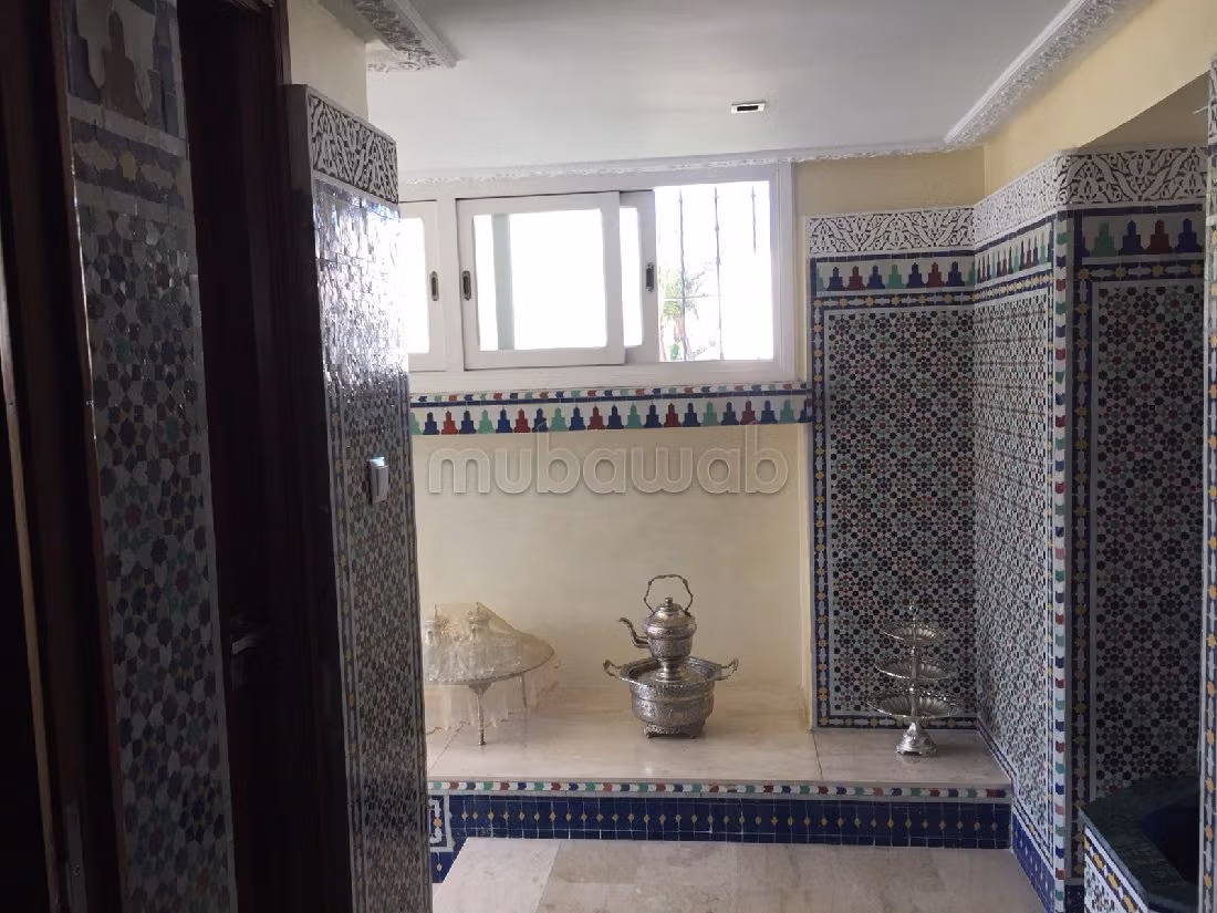 Refinement and comfort with this villa for sale. Price 15,176,200 DH. 5 living areas, 4 private bathrooms, 898 m². 4 bedrooms. Less than 30 years. Living room with Moroccan decor, General satellite dish system.