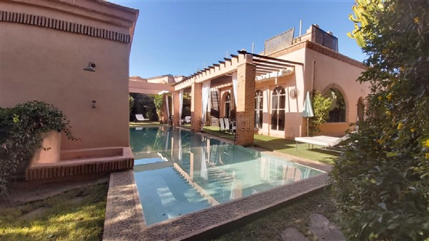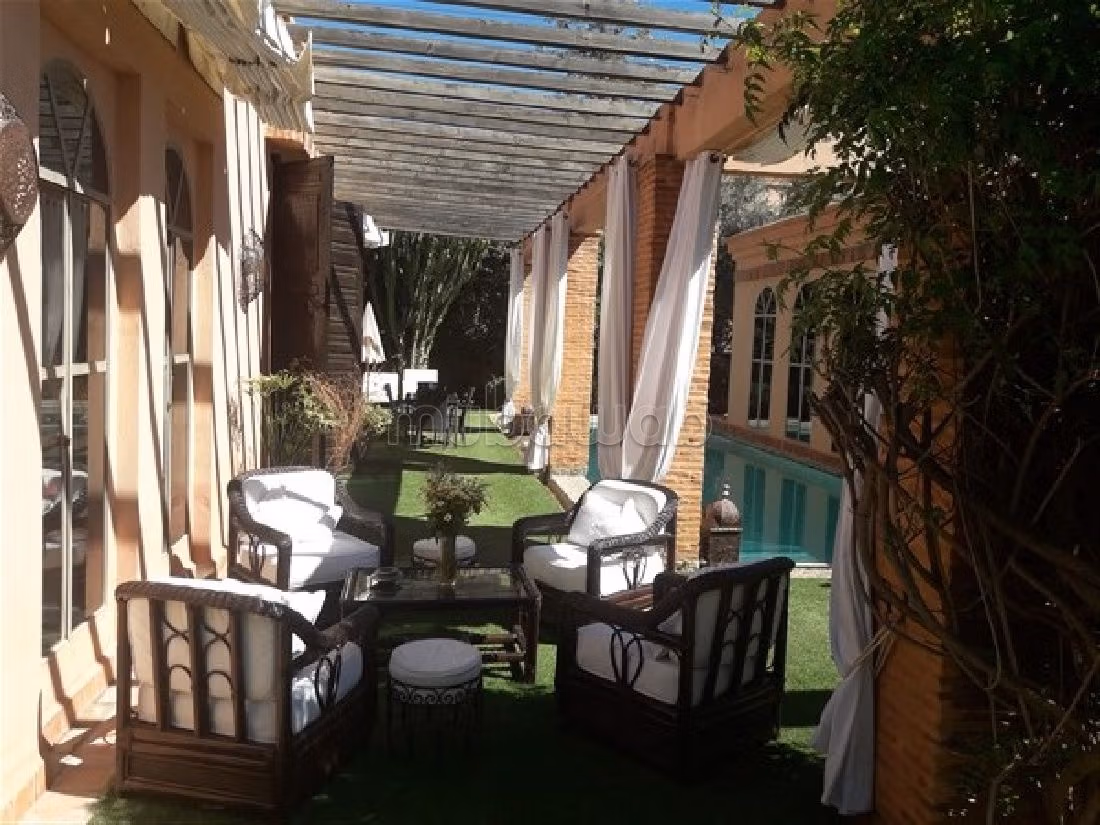 This beautiful villa is for sale in Amelkis. Many amenities including fireplace and swimming pool. The residence also has a caretaker service. Comfort and tradition with a beautiful Moroccan living room. The property also has a satellite dish and the residence is secured.
