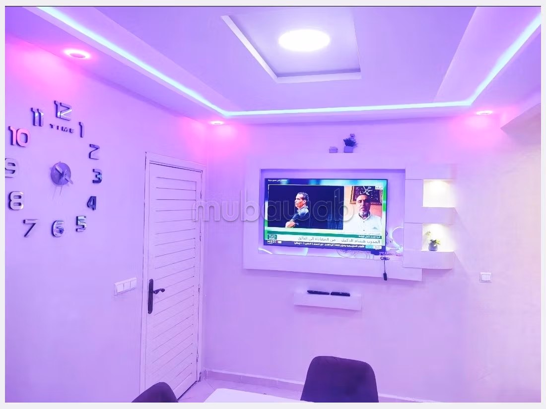 This apartment is offered for sale . Living room with Moroccan decor, General satellite dish system, Secured neighbourhood. Large balcony.