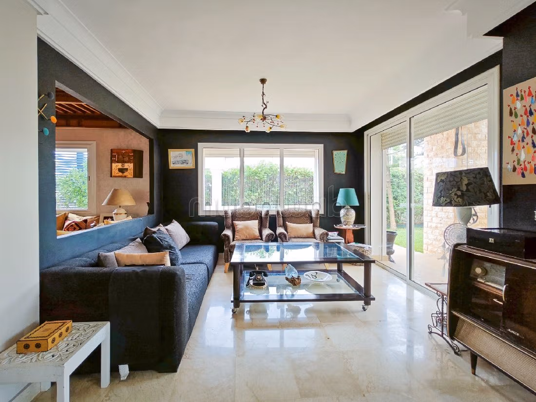 This luxurious house is for rent . Living room with fireplace, Residence with caretaker, Large swimming pool. Secured residence. Superb Moroccan living room and satellite dish.