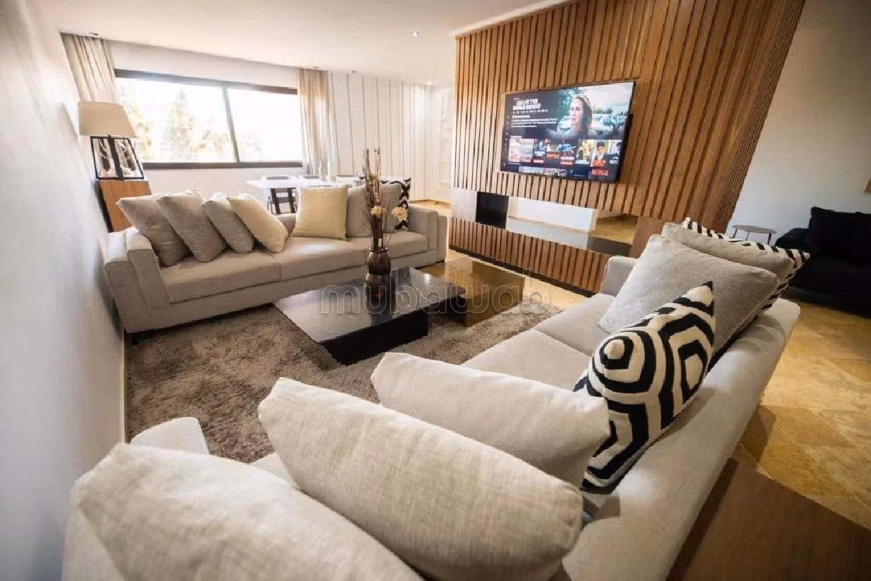 This apartment is offered for rent in Hivernage, Marrakech. Guarded residence.