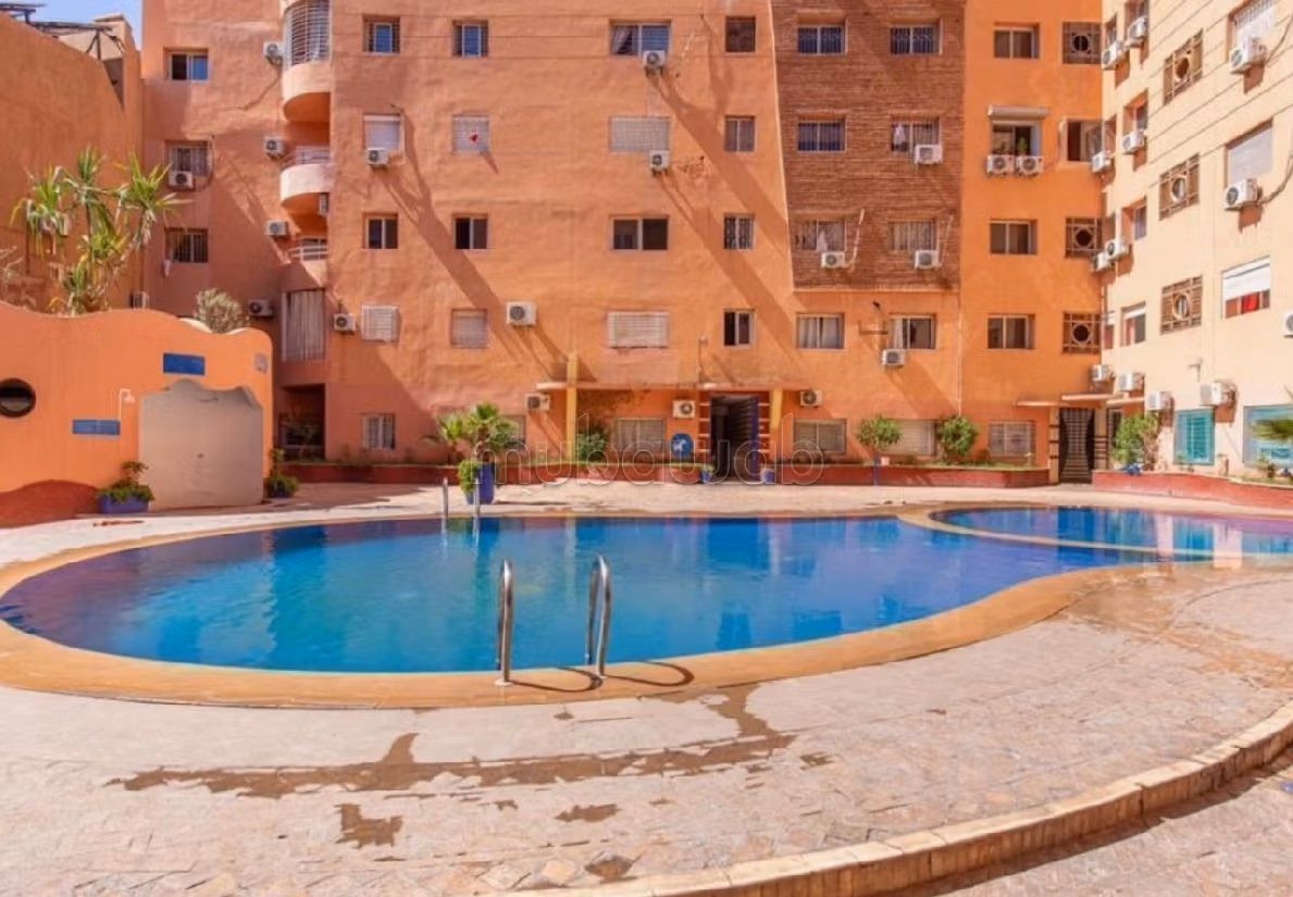 Ideal apartment for sale. Price 1,280,000 DH. 3 living areas, 1 bathroom, 110 m². 2 bedrooms. 2nd On the top floor. Less than 10 years. Floor type: Tiled. Living room with fireplace, Residence with caretaker, Large swimming pool.