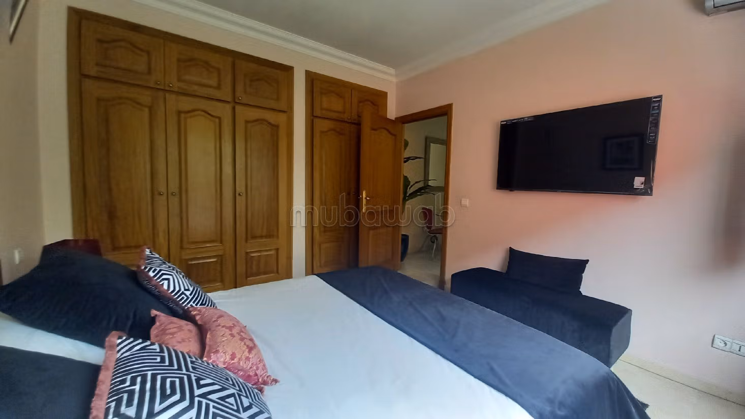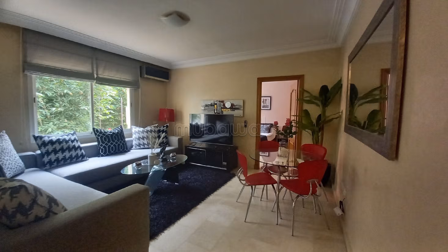 Nice apartment for rent. Price 8,500 DH. 2 living areas, 1 bathroom, area 65 m². 1 room. 2nd Ground floor. Less than 30 years. Covering: Marble. Dressing room.