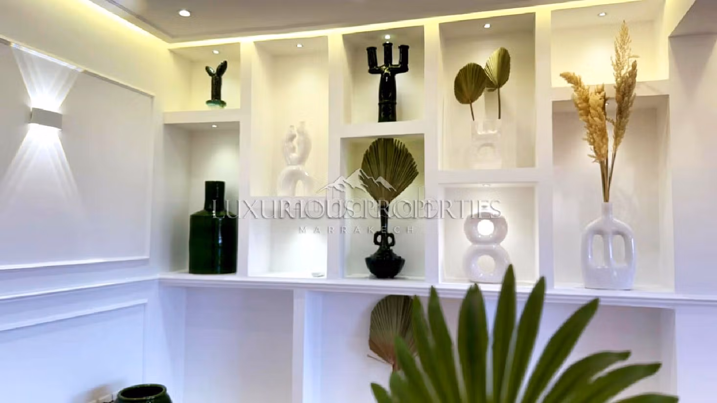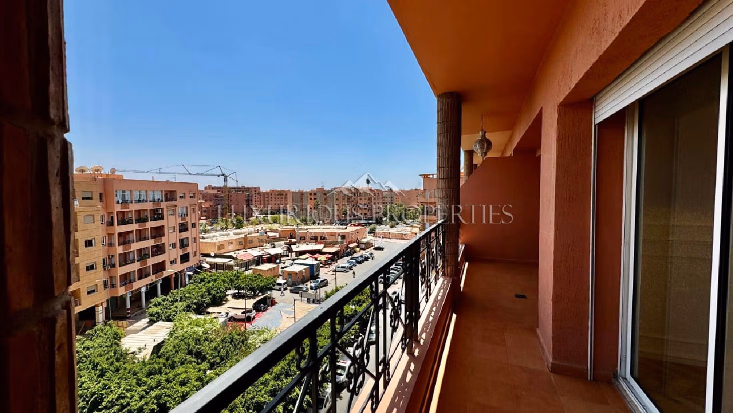 This apartment is for rent in Guéliz. Comfort and security with caretaker service and air conditioning. Cooker with oven.