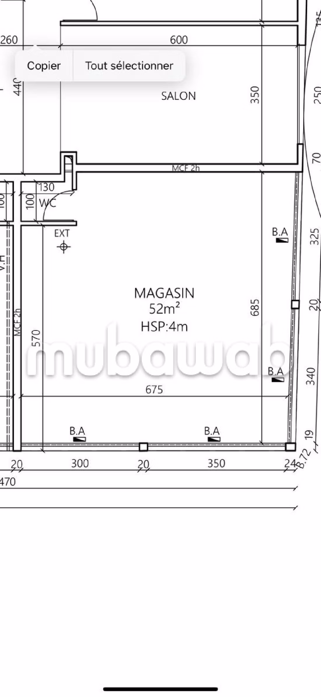 Offices & shops for sale. Price 800,000 DH. 1 bathroom, 52 m². 1st On the first floor. Less than 1 year. Covering: Tiled.