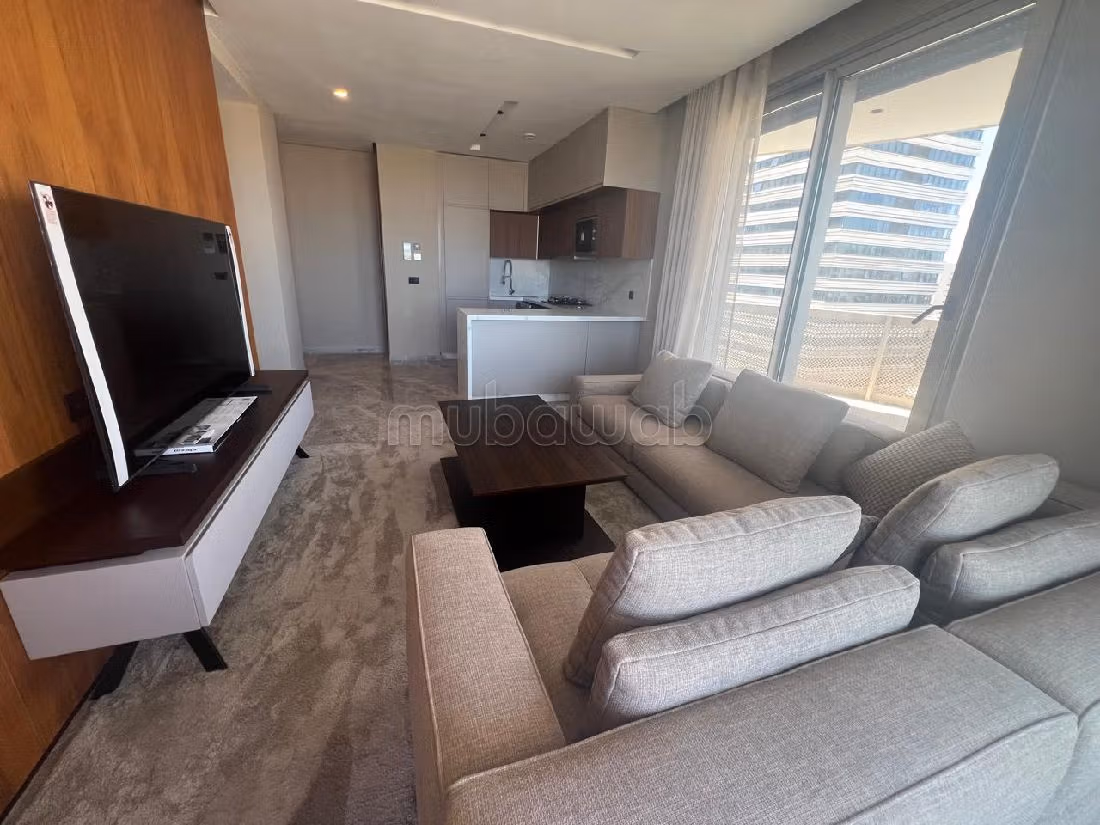 Find out about this apartment for rent. Price 11,000 DH. 4 living areas, 1 bathroom, area 86 m². 1 room. 13th Ground floor. Less than 1 year. Covering: Marble. Well decorated.