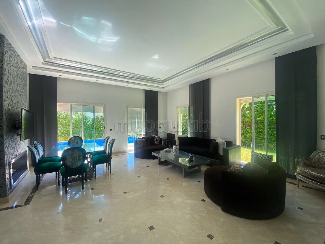 Exceptional villa for rent. Price 50,000 DH. 5 living areas, 3 bathrooms, area 500 m². 4 bedrooms. Good condition. Enjoy the comfort of the fireplace. The residence also has a swimming pool.
