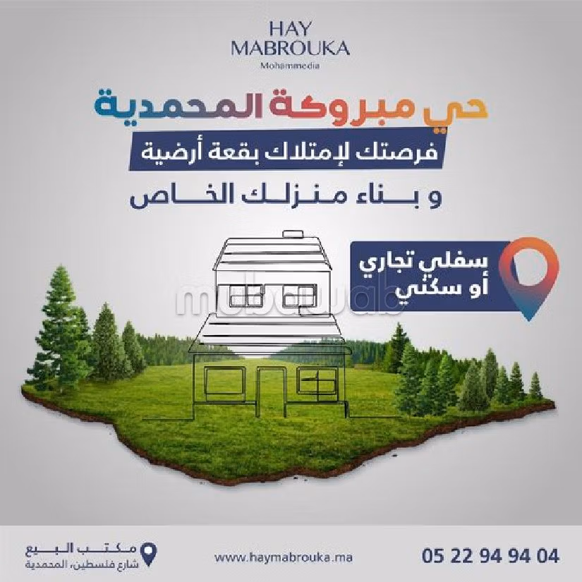 Good deal on this land for sale. Price 8,000 DH. Large area 100 m². This land is offered for sale in Al Aalia, Mohammédia.