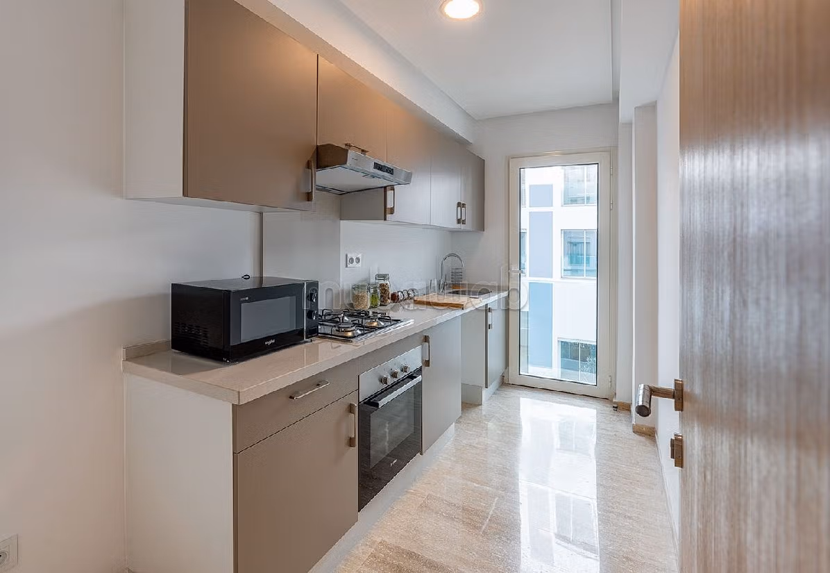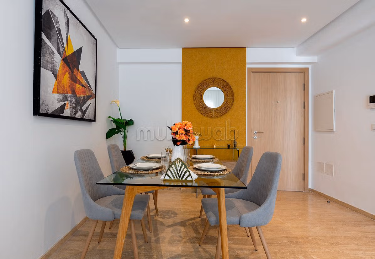 Get a great deal by buying this apartment. Price 1,375,000 DH. 2 rooms, 2 bathrooms, area 82 m². 3 rooms. New. Floor type: Marble. The exterior consists of a garden and a terrace. A lift and a garage are also at your disposal.