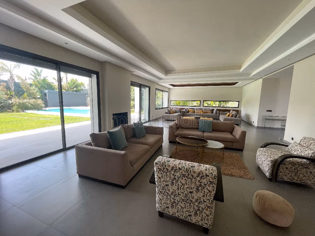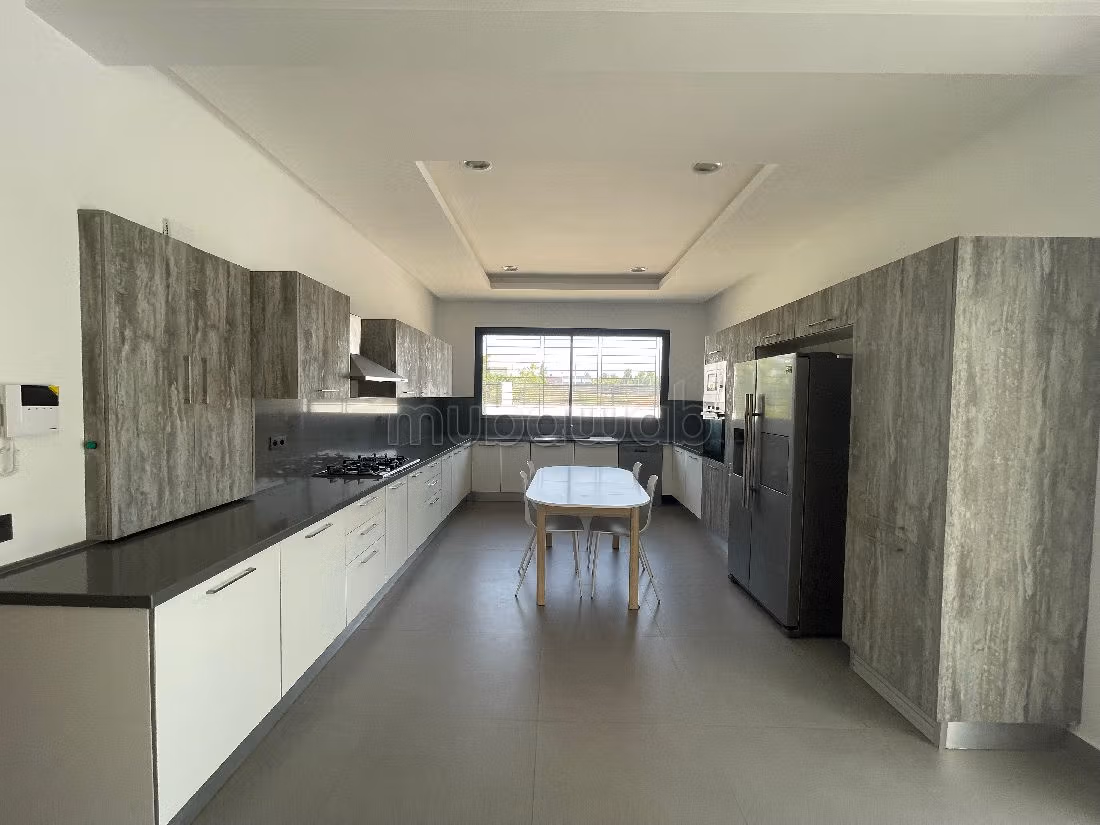 Preciosa villa en alquiler que combina lujo y comodidad. Precio 65.000 DH. 5 dormitorios, 6 baños, área 1300 m². 8 habitaciones luminosas. Menos de 1 año. Suelo de parquet Mármol. Chimenea operativa, servicio de conserjería, propiedad con piscina, sistema de aire condicionado general.