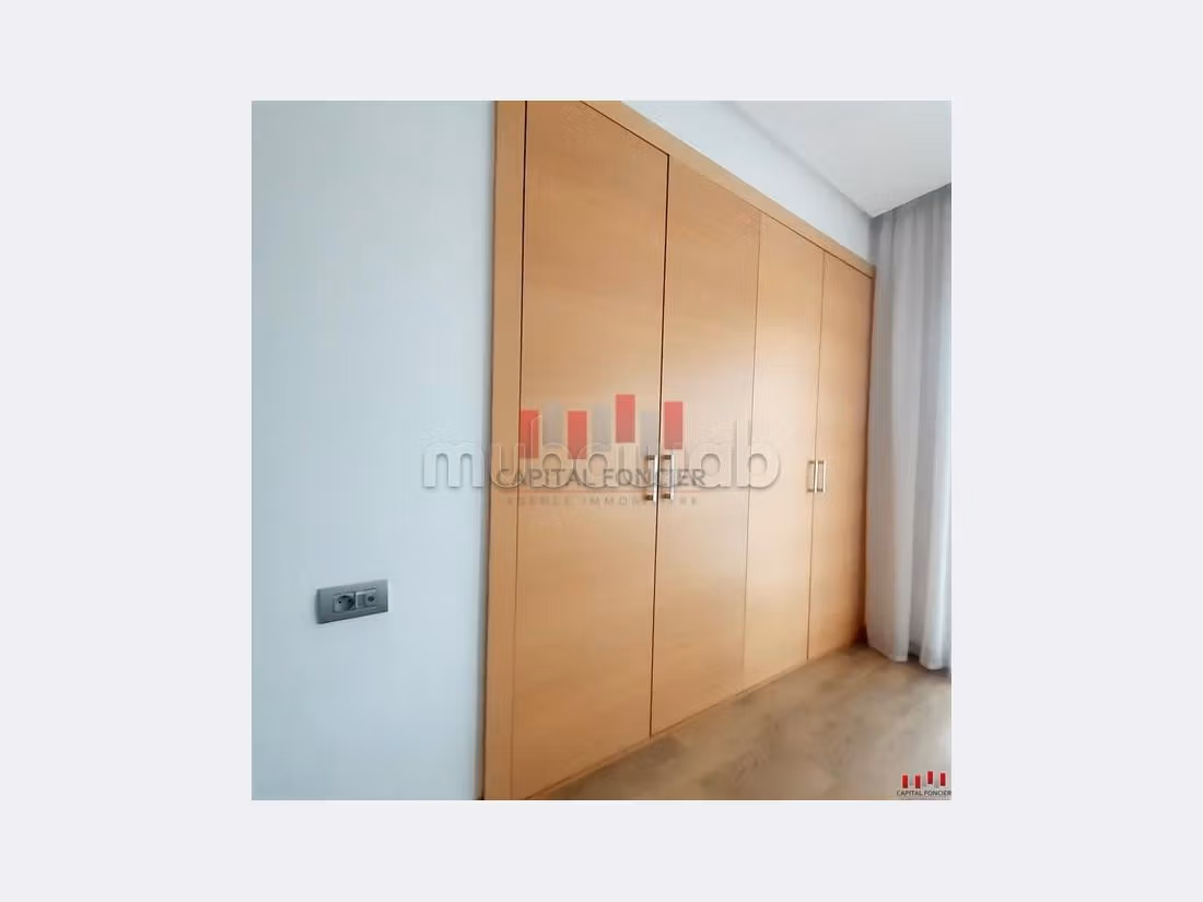 No te pierdas este piso en alquiler. Precio 8.500 DH. 2 dormitorios, 2 baños, 130 m². Muchas instalaciones: chimenea, aire condicionado y piscina.