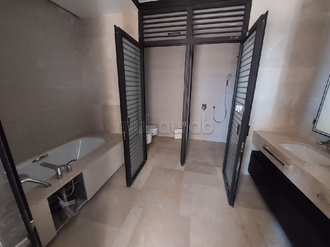 Aprovecha la oportunidad de conseguir este maravilloso piso. Precio 9.500.000 DH. 3 habitaciones, 2 baños, 185 m². 2 habitaciones. 2º planta. Menos de 1 año. Suelo de moqueta Mármol. Puerta blindada, salón tradicional, sistema parabólico general, residencia con seguridad.