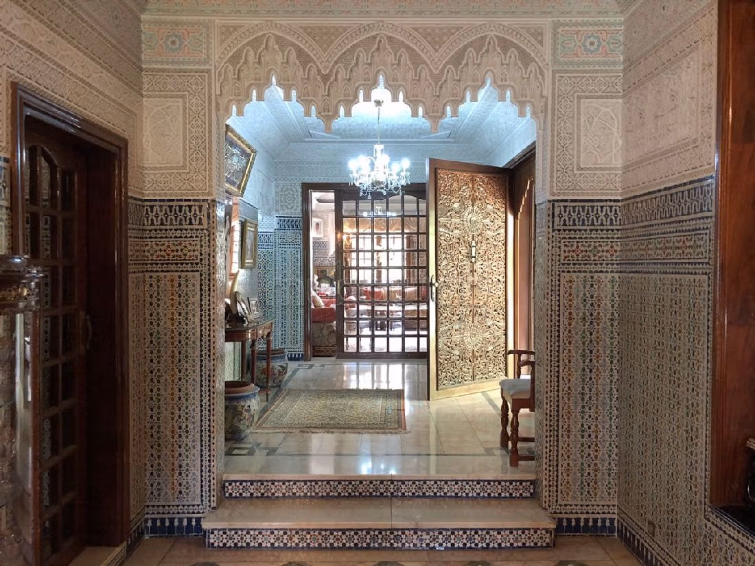 Altas prestaciones para esta magnífica casa en venta. Precio 31.000.000 DH. 5 dormitorios, 4 baños, área 1564 m². 6 habitaciones. Menos de 20 años. Suelo de marmol Mármol. Decoración tradicional con hermoso salón marroquí. La propiedad también está equipada con una puerta blindada y la residencia es segura.