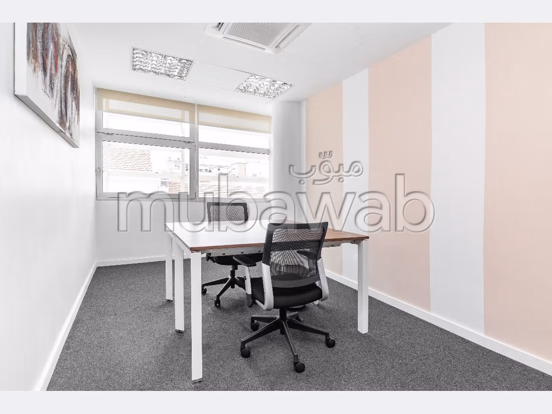 Oficinas en alquiler. Precio 6.700 DH. 1 baño, 15 m². Menos de 5 años. Disfruta de la calma absoluta con ventanas de doble acristalamiento. Tiene calefacción central.