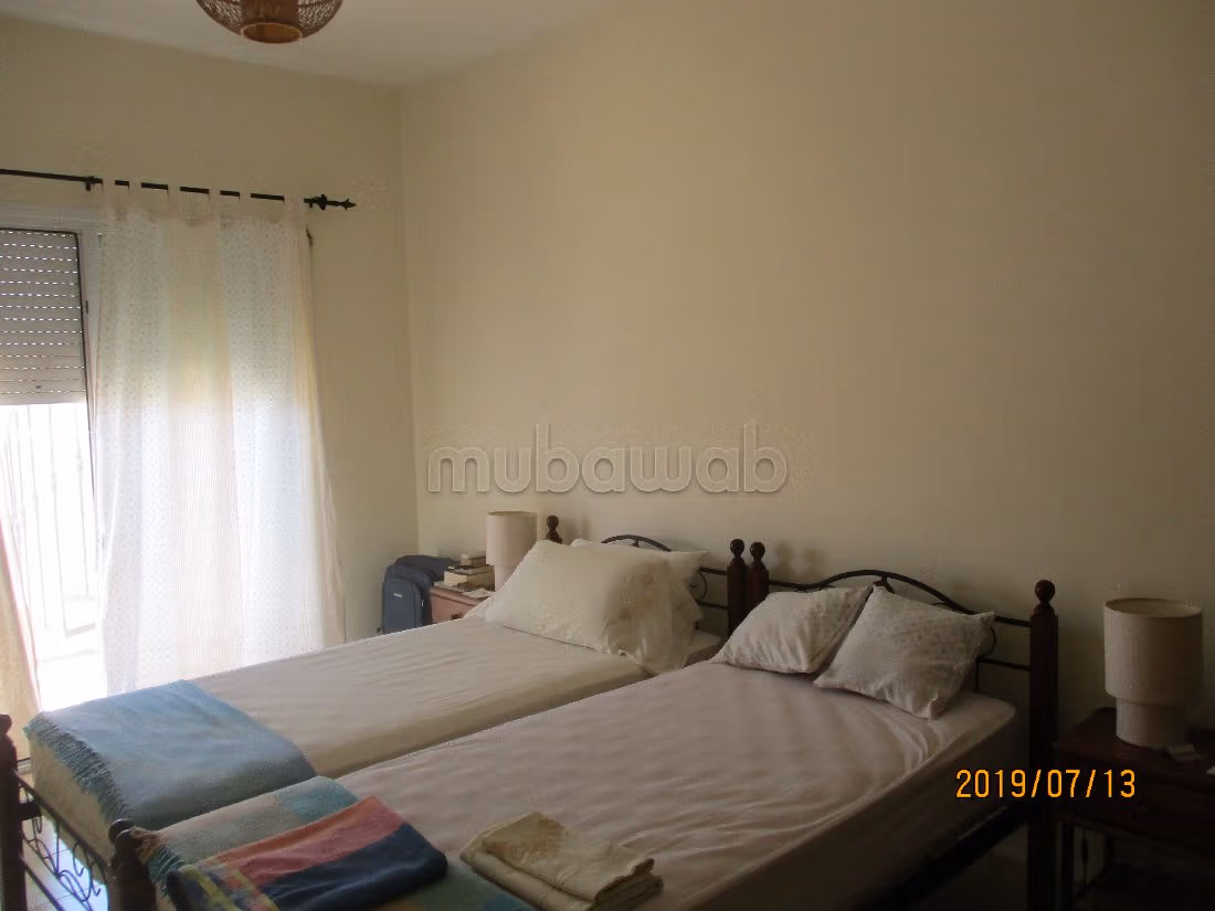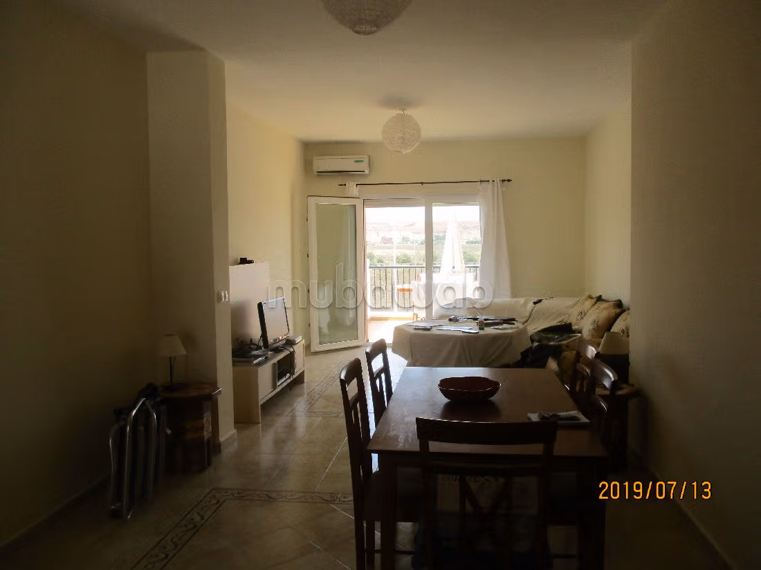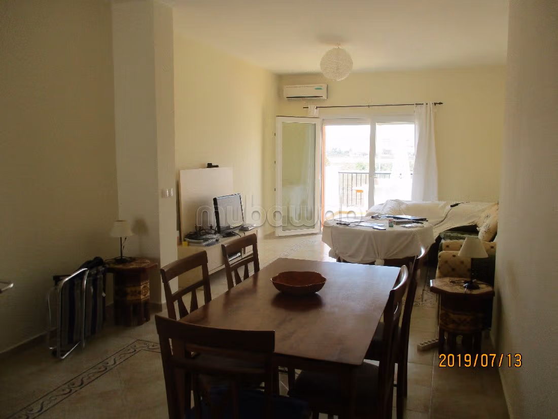 Sur la meilleure plage et Spa de la Méditerranée, 2ème étage à vendre, surface construite 240, surface utile 120, Meublé, 3 pieces, 2 chambres doubles :, Débarras, 2 salles de bains, Grand salon, Cuisine meublée avec appareils électroménagers, climatisation. (chaud et froid), âge entre 5 et 10 ans, armoires emp. (2), état de conservation : tout neuf, frais de communauté : entre 10 et 20, jardin (communautaire), Grand Solarium de 120 mètres, Possibilité de mettre un Haima. Deux terrasses. Piscine avec grand espace vert, orientation nord-est, piscine (communautaire), sols : grès. Urbanisation clôturée extraordinaire, avec sécurité 24h/24 1200000DH 120000 EU