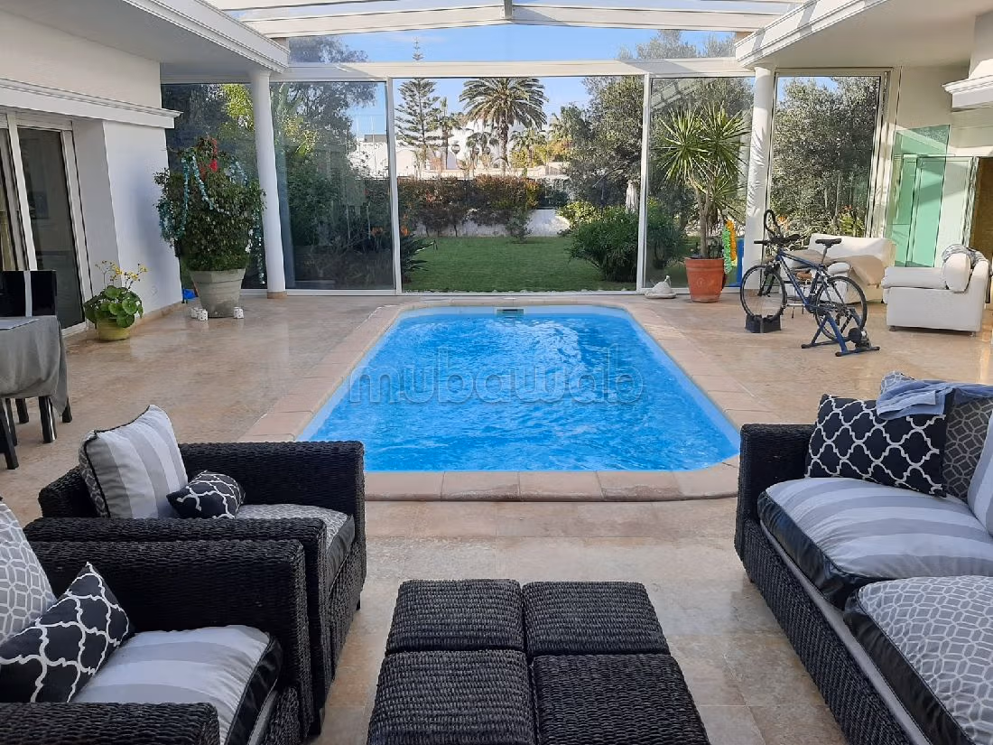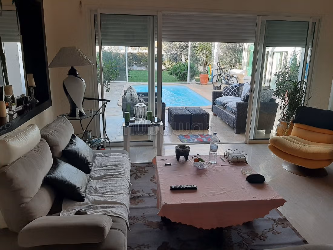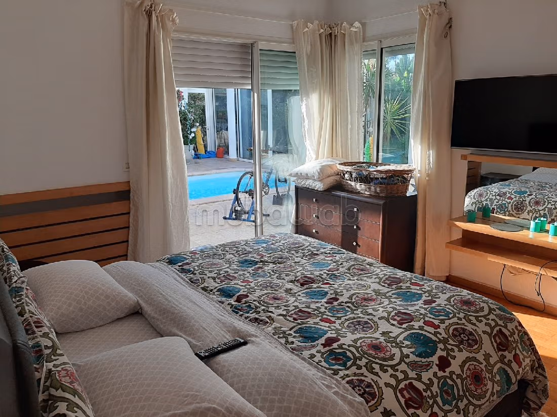 Altas prestaciones para esta magnífica villa en alquiler. Precio 29.500 DH. 4 dormitorios, 3 baños, área 800 m². 5 habitaciones. Menos de 20 años. Revestimiento Mármol. Salón con chimenea, residencia con piscina, aire condicionado general.