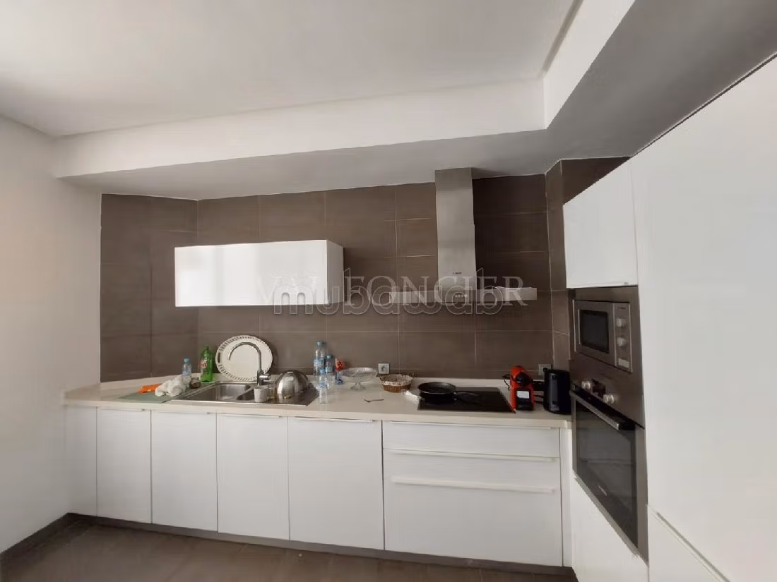 Descubre este piso en alquiler. Precio 22.000 DH. 2 dormitorios, 2 baños, área 145 m². Terraza grande.Descubre este piso en alquiler en Ain Diab, Casablanca. Cocina totalmente equipada.