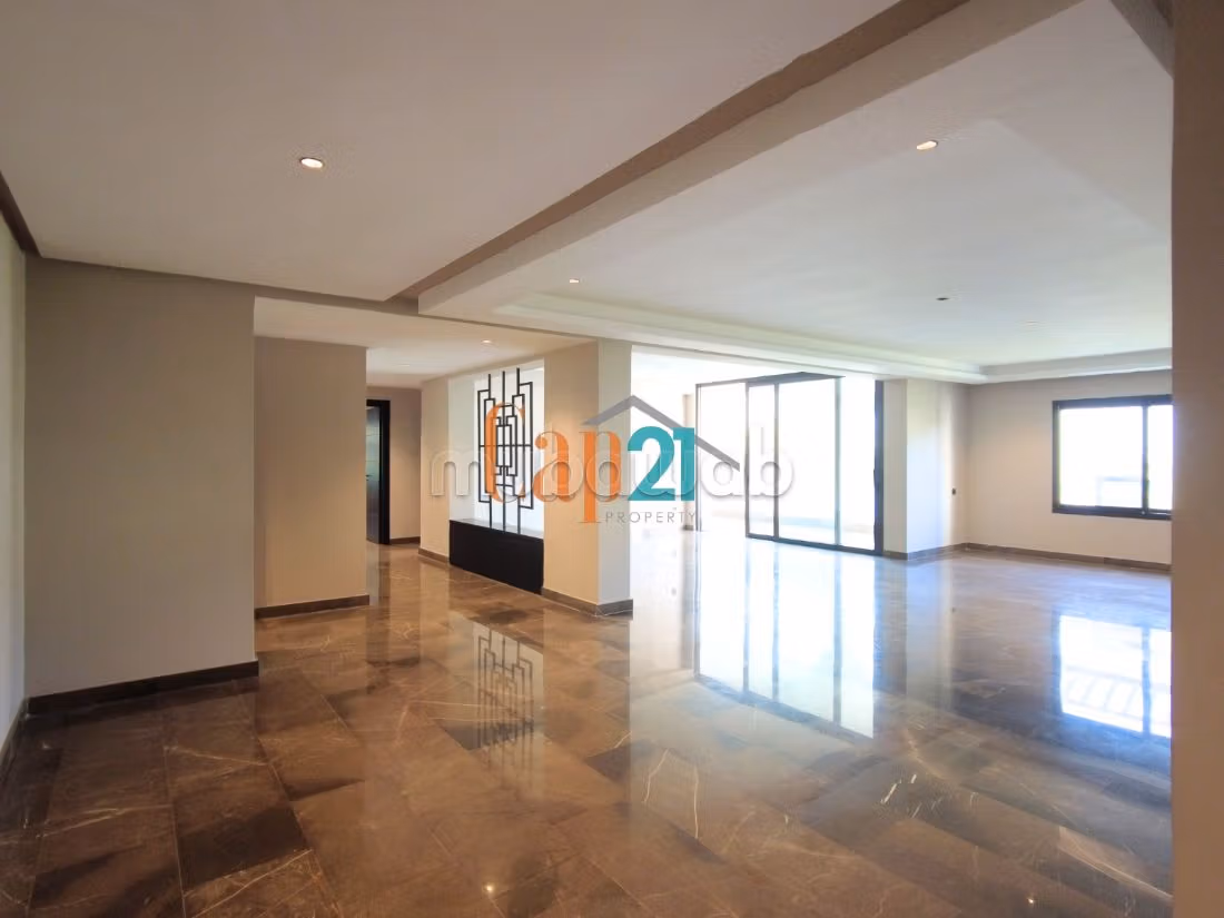 Altas prestaciones para este piso en alquiler. Precio 25.000 DH. 4 dormitorios, 4 baños, 260 m². 5 habitaciones. Nuevo. Los exteriores tienen un jardín y una terraza. Un garaje también está disponible.