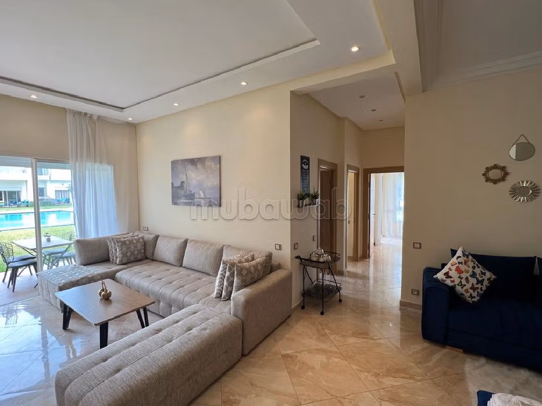 Piso en alquiler idealmente ubicado. Precio 8.000 DH. 2 dormitorios, 2 baños, área 90 m². 3 habitaciones. Menos de 5 años. Suelo de parquet Mármol. Espacios verdes, sin ascensor, balcón.
