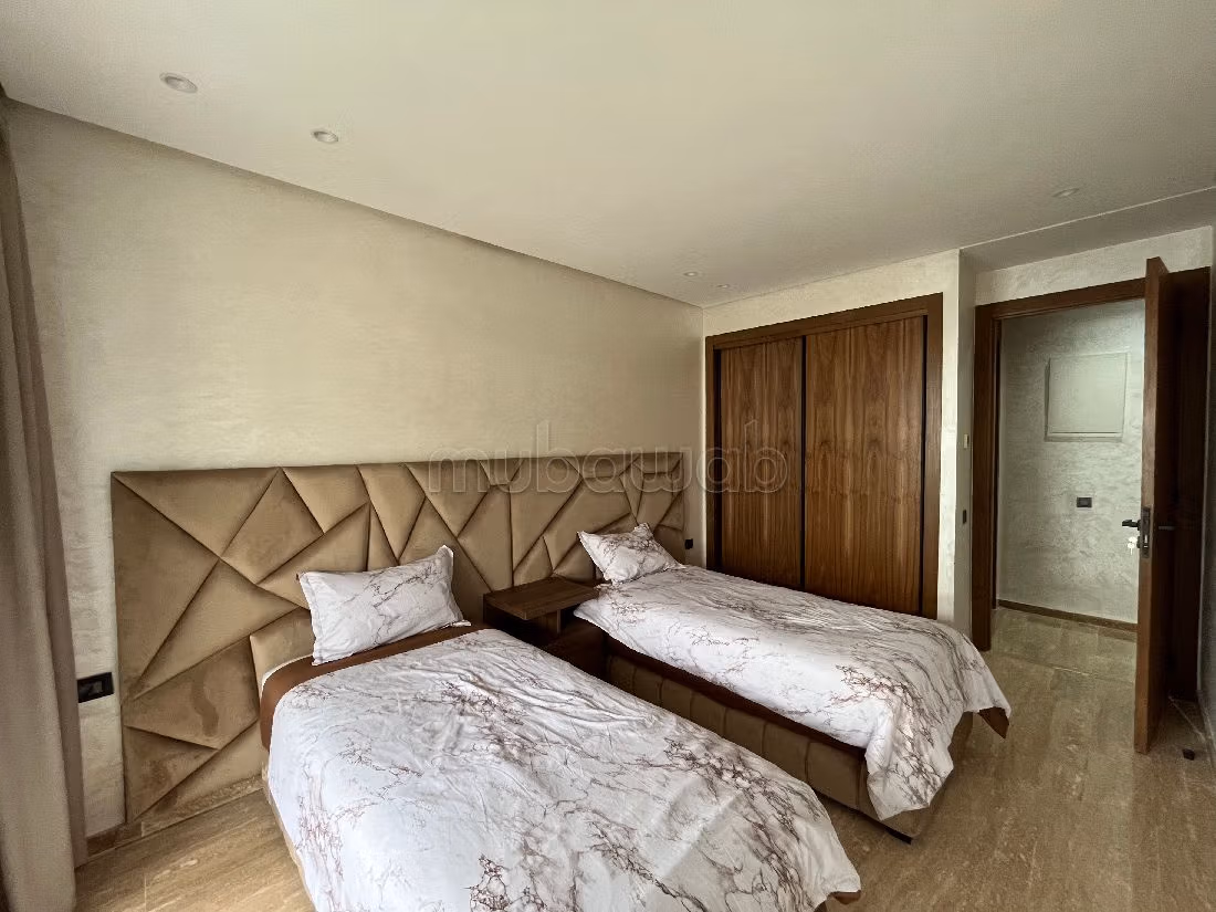 Descubre este piso en alquiler. Precio 11.500 DH. 3 habitaciones, 2 baños, área 116 m². 2 dormitorios. 1º Nivel. Menos de 1 año. Suelo de marmol Mármol. Muebles.