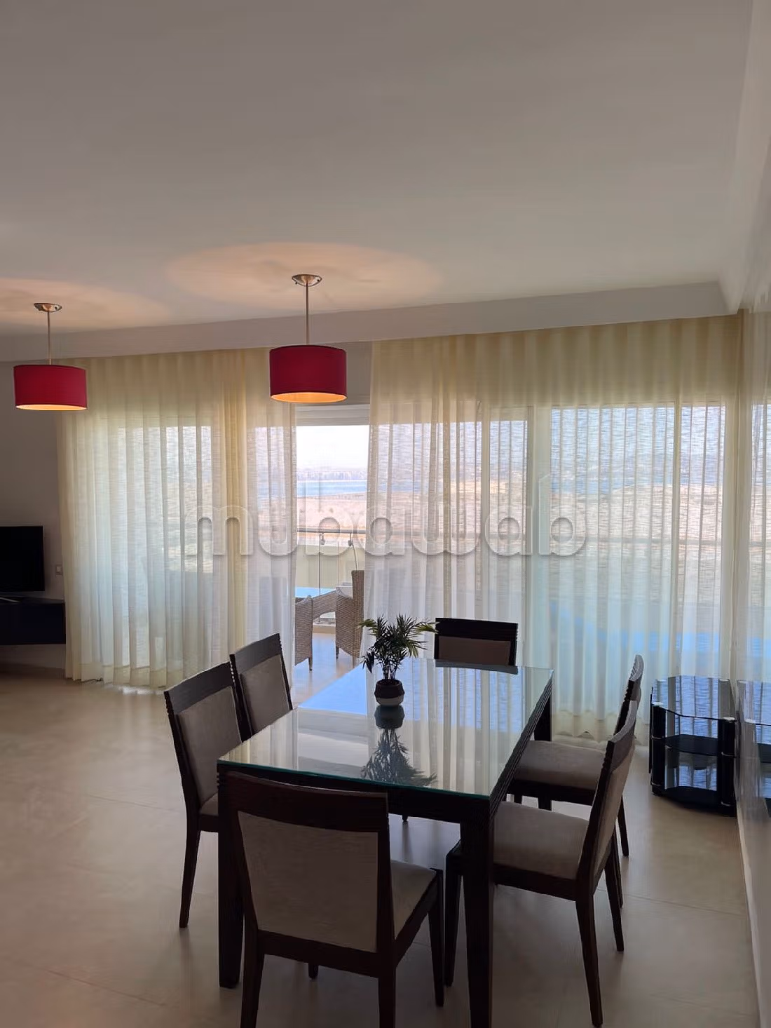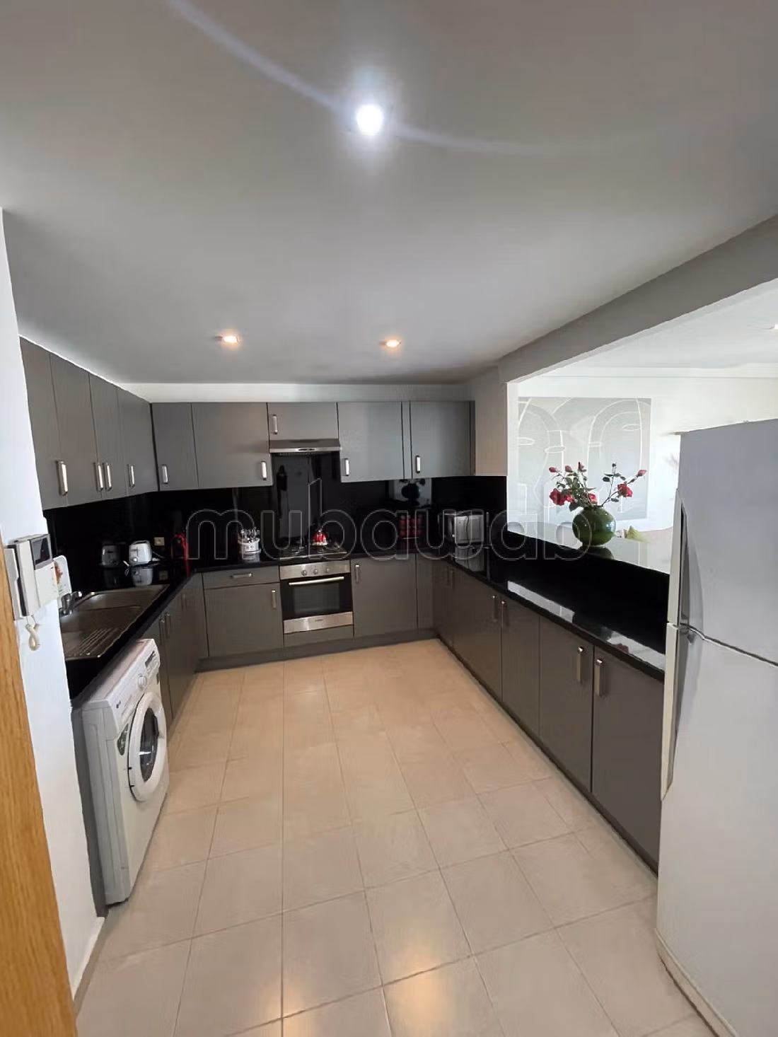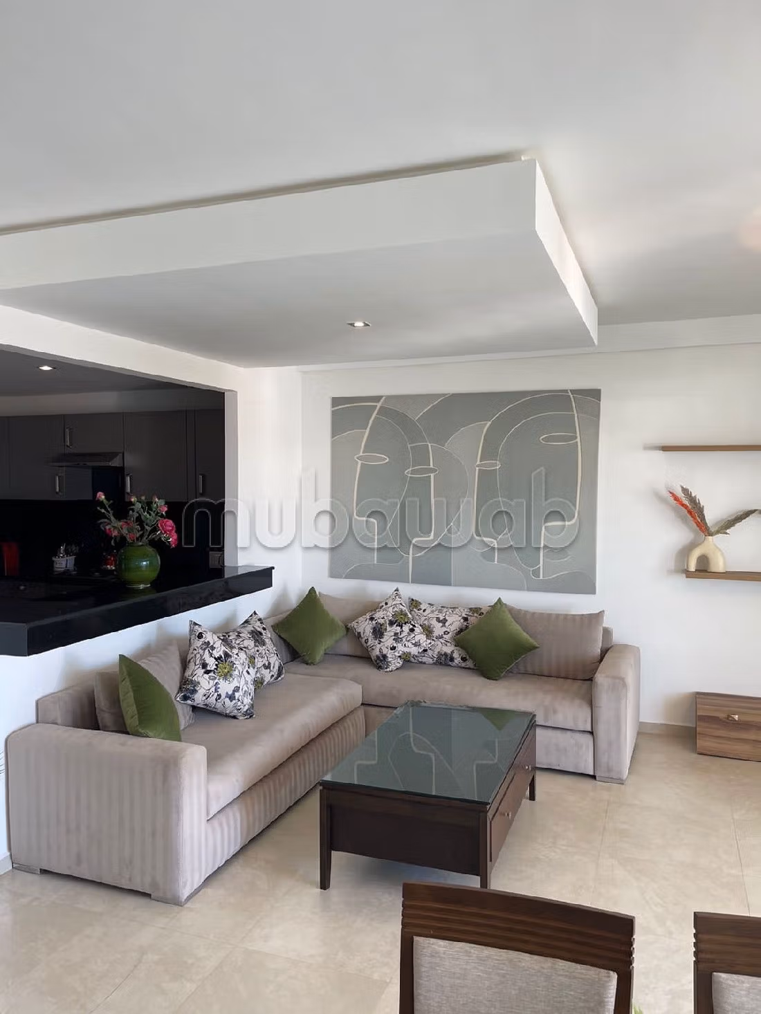 Descubre este piso en alquiler. Precio 15.000 DH. 2 dormitorios, 2 baños, 132 m². 4 habitaciones luminosas. 3º Planta baja. Menos de 10 años. Tipo de suelo: Baldosa. Completamente amueblado.