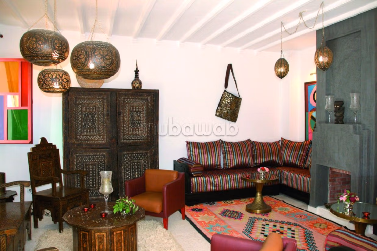 Esta preciosa casa está a la venta en Cité Portugaise. Salón contemporáneo. La decoración es tradicional con un hermoso salón marroquí.