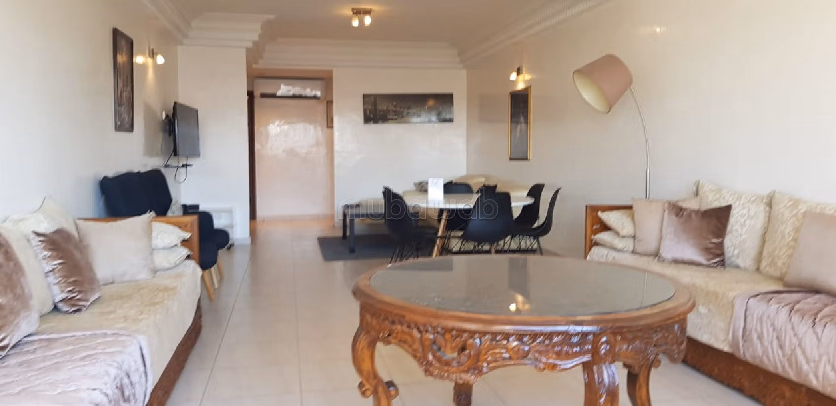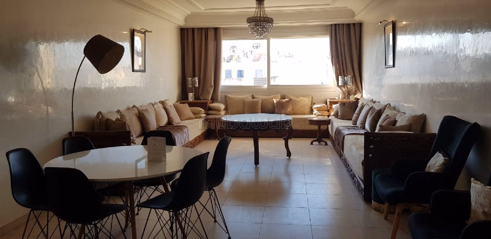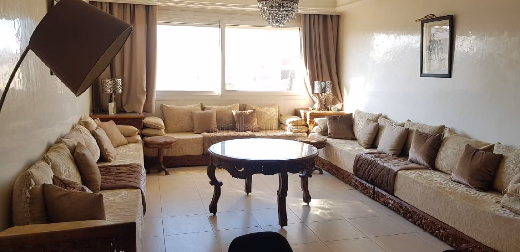 No te pierdas este piso en alquiler. Precio 7.500 DH. 2 dormitorios, 2 baños, área 106 m². 3 habitaciones. 5º Planta baja. Menos de 10 años. Suelo de moqueta Mármol. Decoración tradicional con hermoso salón marroquí. La propiedad también está equipada con una antena parabólica y la residencia es segu.