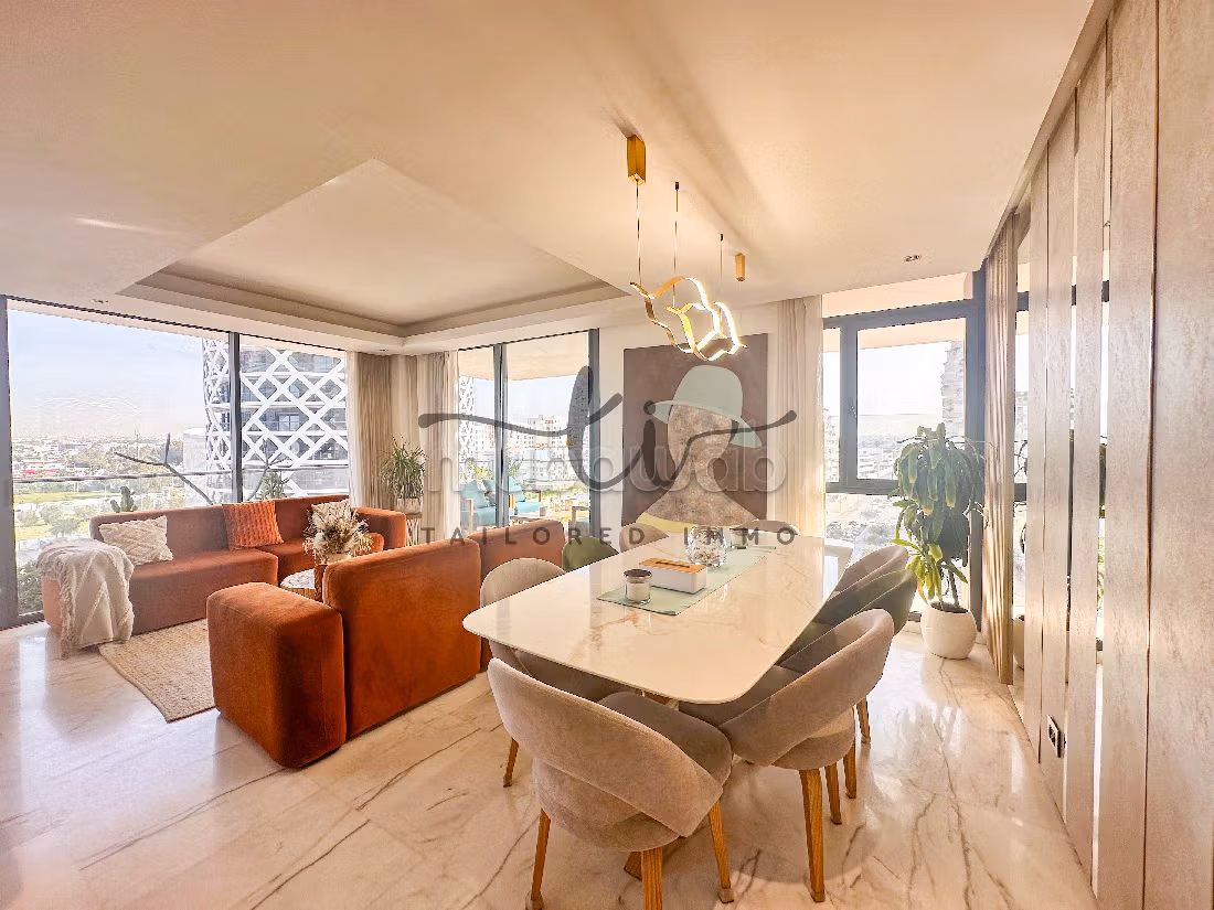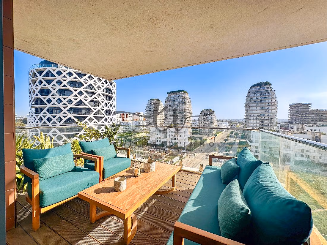 Este piso está en alquiler en Casablanca Finance City. Dispone de terraza, ascensor y plazas de aparcamiento. Conserje disponible, propiedad con piscina.