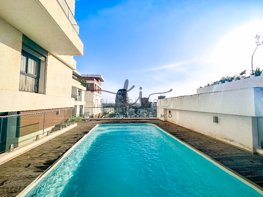 Altas prestaciones para este piso en alquiler. Precio 30.000 DH. 3 dormitorios, 3 baños, 200 m². 6 habitaciones. 7º Úlltima planta. Menos de 5 años. Suelo de parquet Mármol. Mobiliario nuevo.