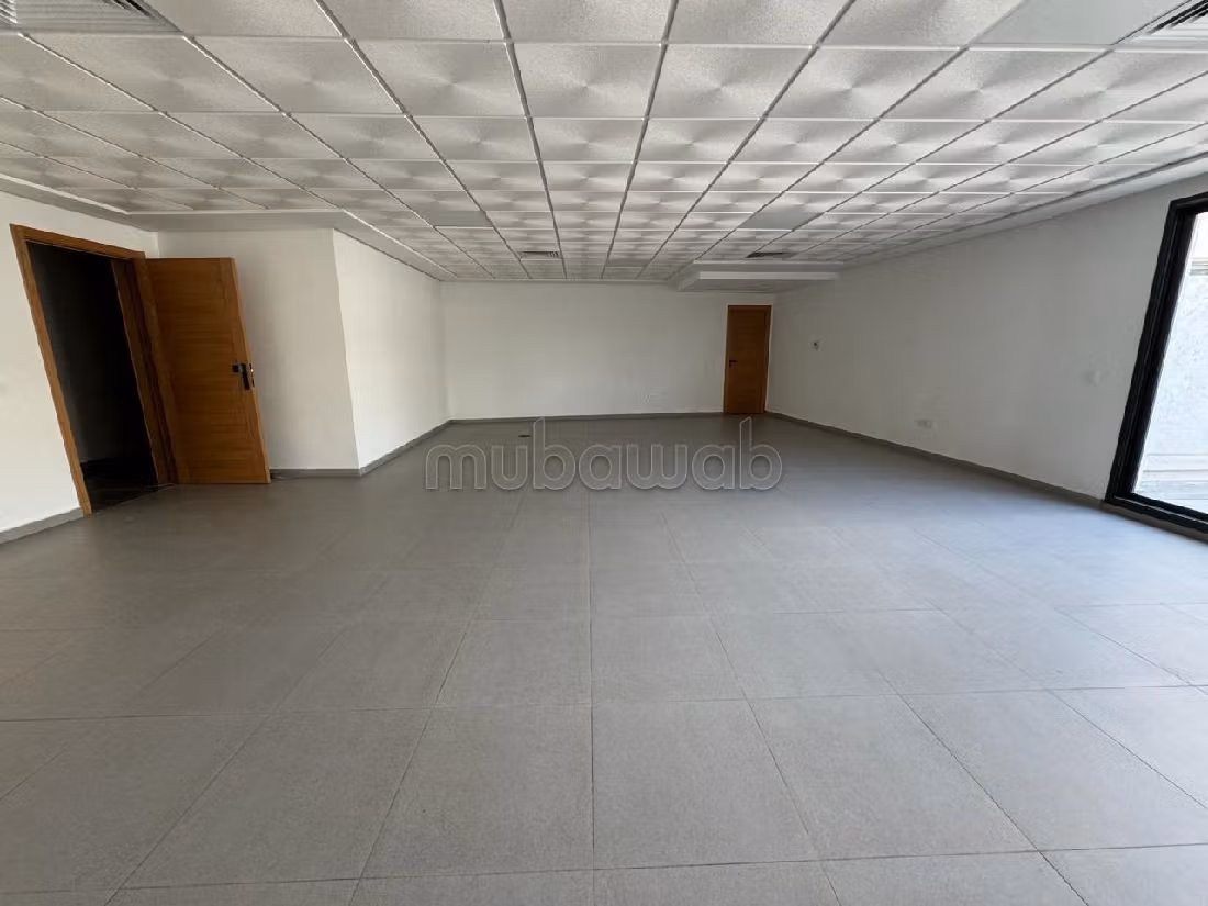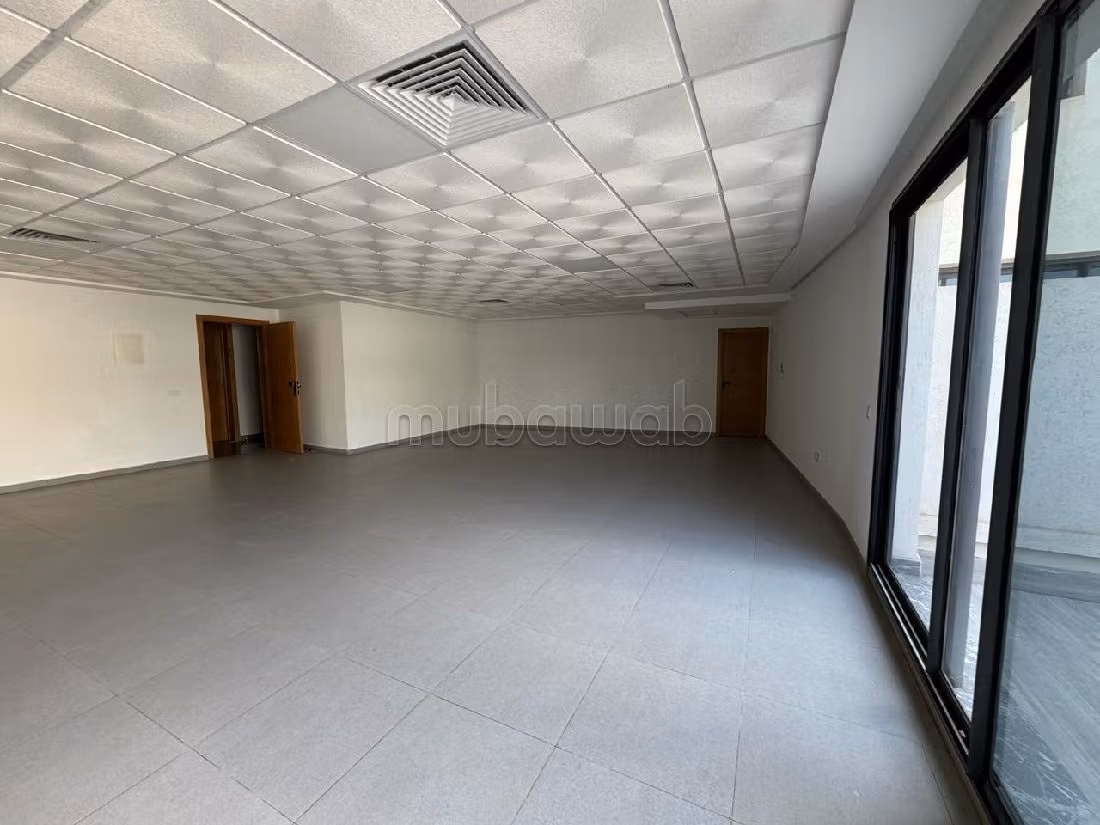 Oficinas en alquiler. Precio 21.600 DH. 1 baño, área de 139 m². Menos de 1 año. Suelo de moqueta Baldosa. Disfruta de la calma absoluta con ventanas de doble acristalamiento. Puerta blindada y calefacción central.