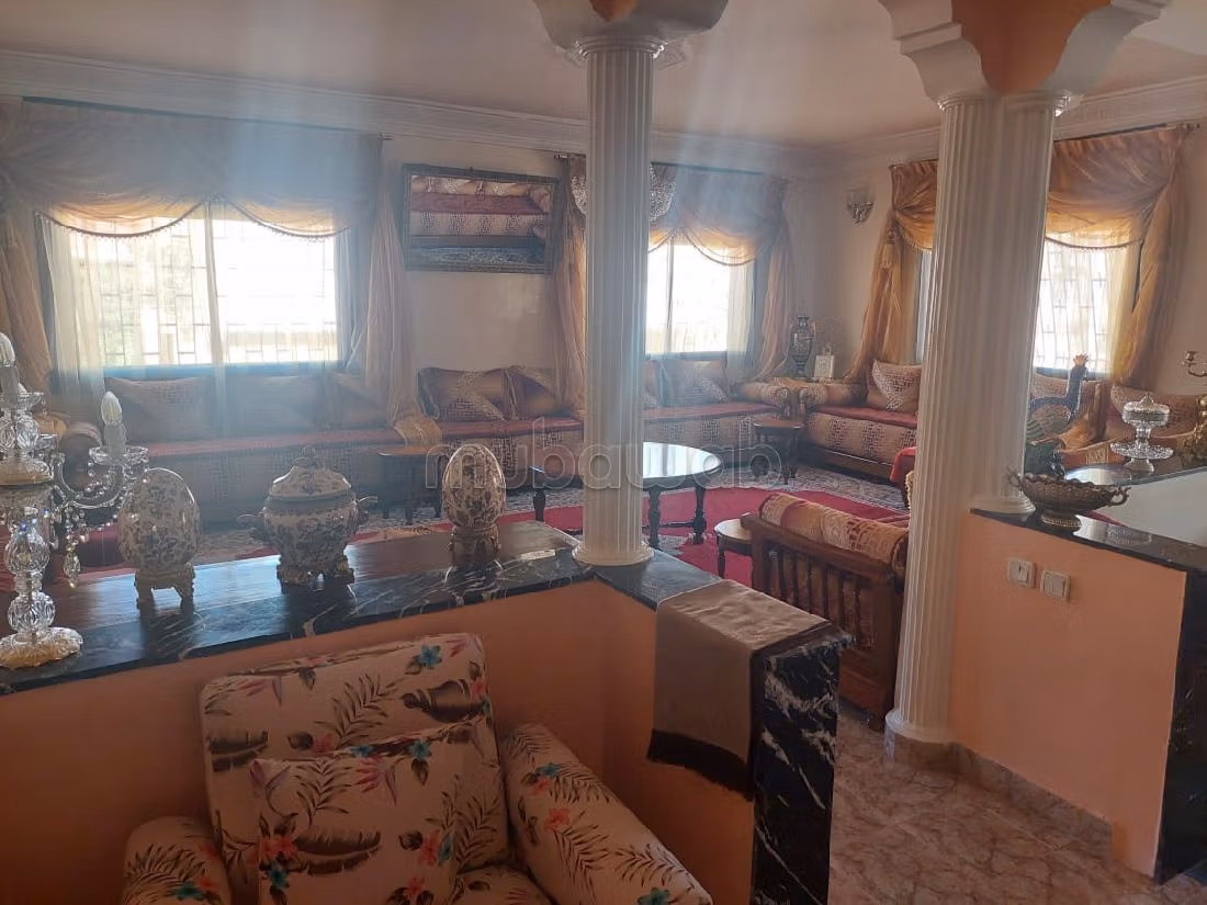 Ven a visitar esta maravillosa casa en venta. Precio 2.450.000 DH. 5 dormitorios, 4 baños, 300 m². 9 habitaciones. Menos de 30 años. Comodidad y tradición con un hermoso salón marroquí. La propiedad también cuenta con una antena parabólica.