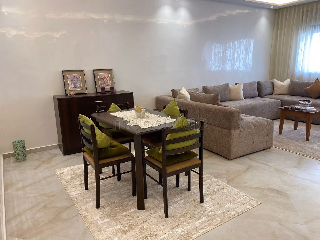 Alquila el piso de tus sueños. Precio 12.500 DH. 3 habitaciones, 2 baños privados, 109 m². 2 habitaciones. Menos de 10 años. Suelo de parquet Mármol. Propiedad completamente amueblada.