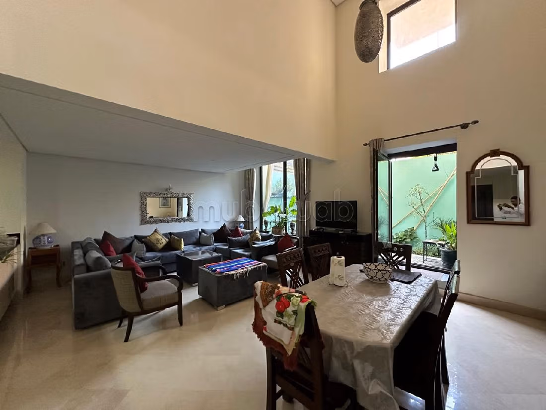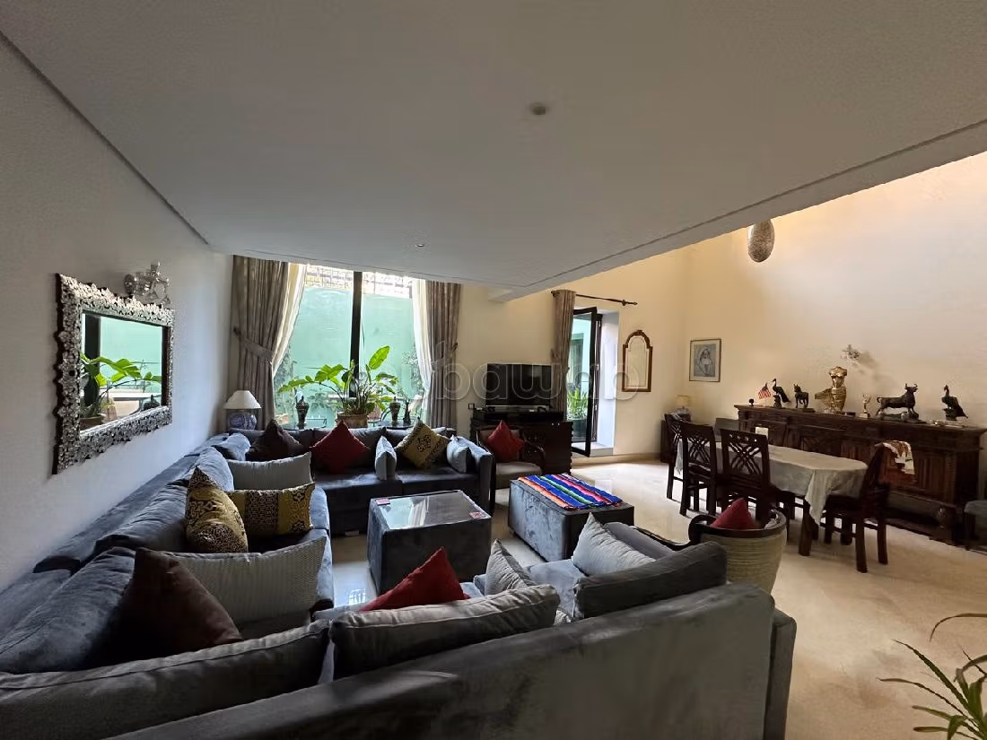 Precioso piso en venta. Precio 3.500.000 DH. 4 habitaciones, 3 baños, área 156 m². 3 habitaciones. Menos de 5 años. Revestimiento Mármol. Salón con chimenea, residencia con conserje y piscina, aire condicionado general.