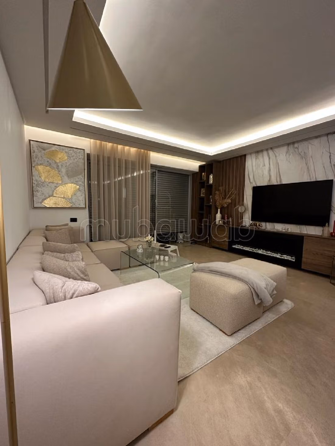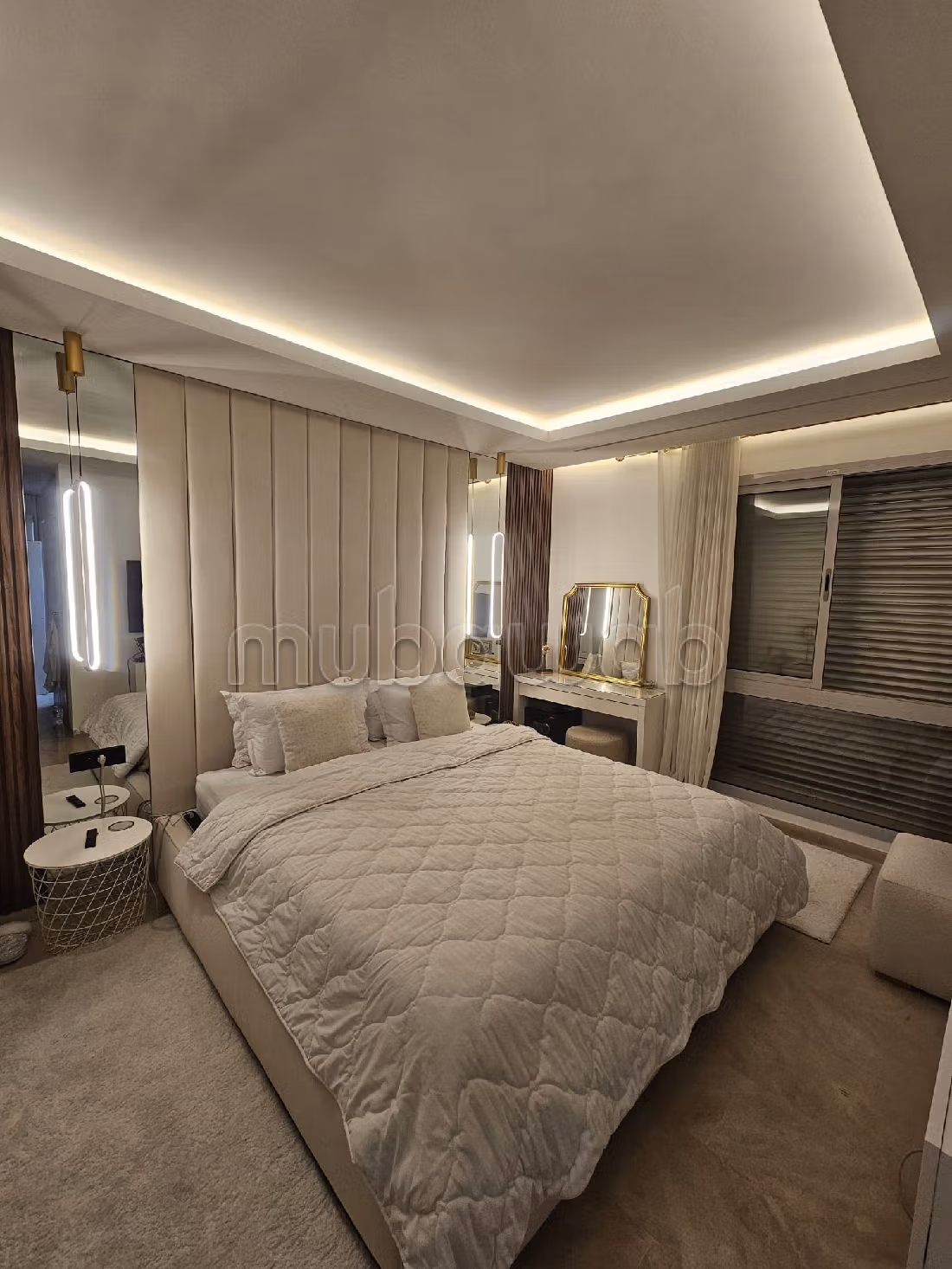 Altas prestaciones para este piso en alquiler. Precio 25.000 DH. 3 dormitorios, 3 baños, área 170 m². 5 habitaciones. 6º Primera planta. Menos de 1 año. Suelo de moqueta Mármol. Amueblado.