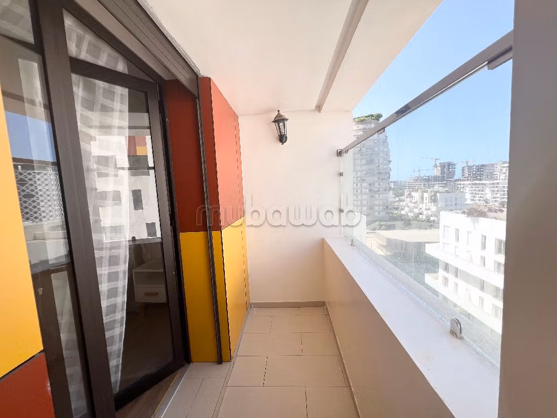 Altas prestaciones para este piso en alquiler. Precio 10.500 DH. 3 habitaciones, 2 baños privados, 84 m². 2 habitaciones. 6º Planta. Menos de 5 años. Suelo de moqueta Mármol. Sin ascensor, con gran terraza.