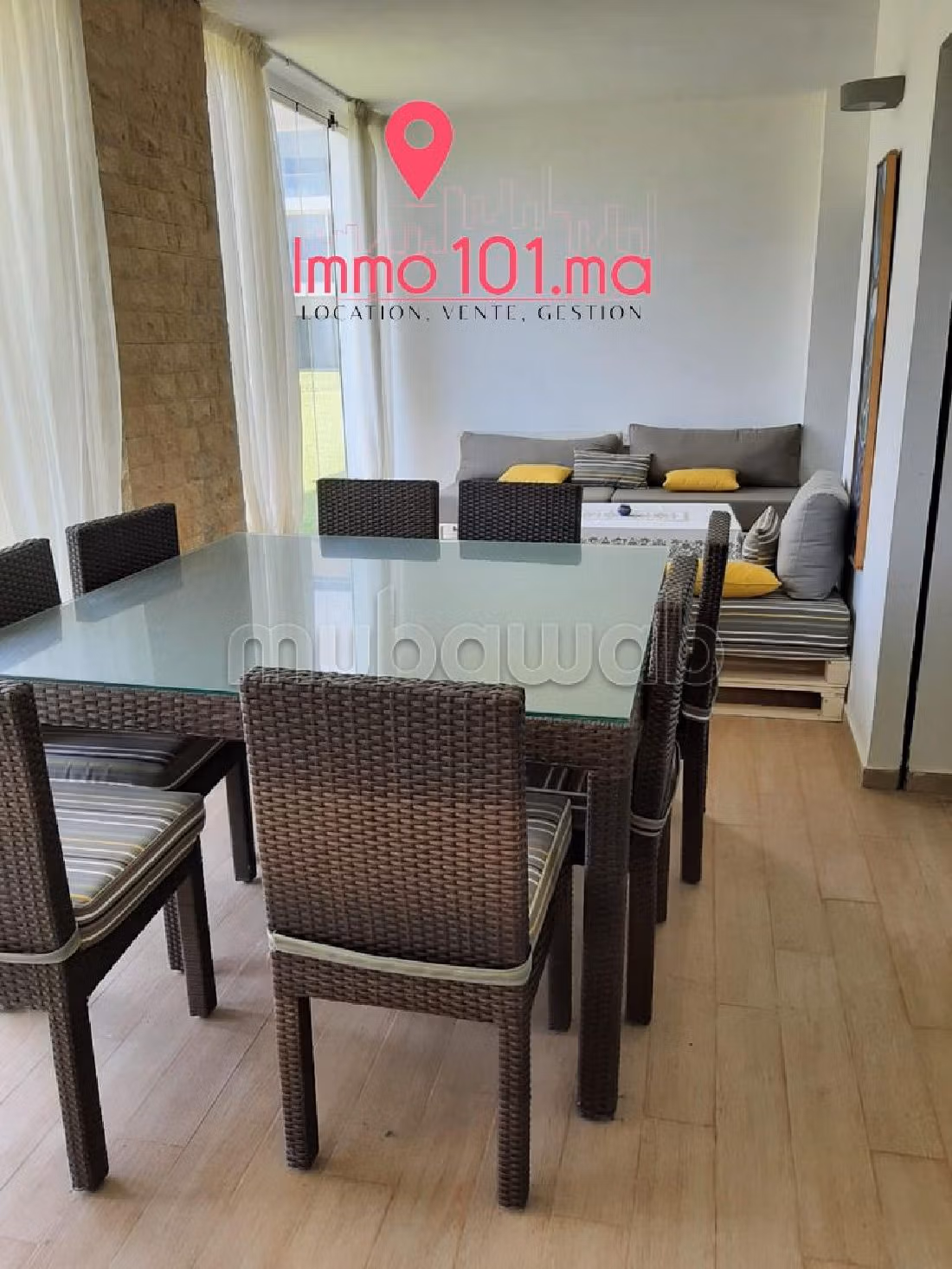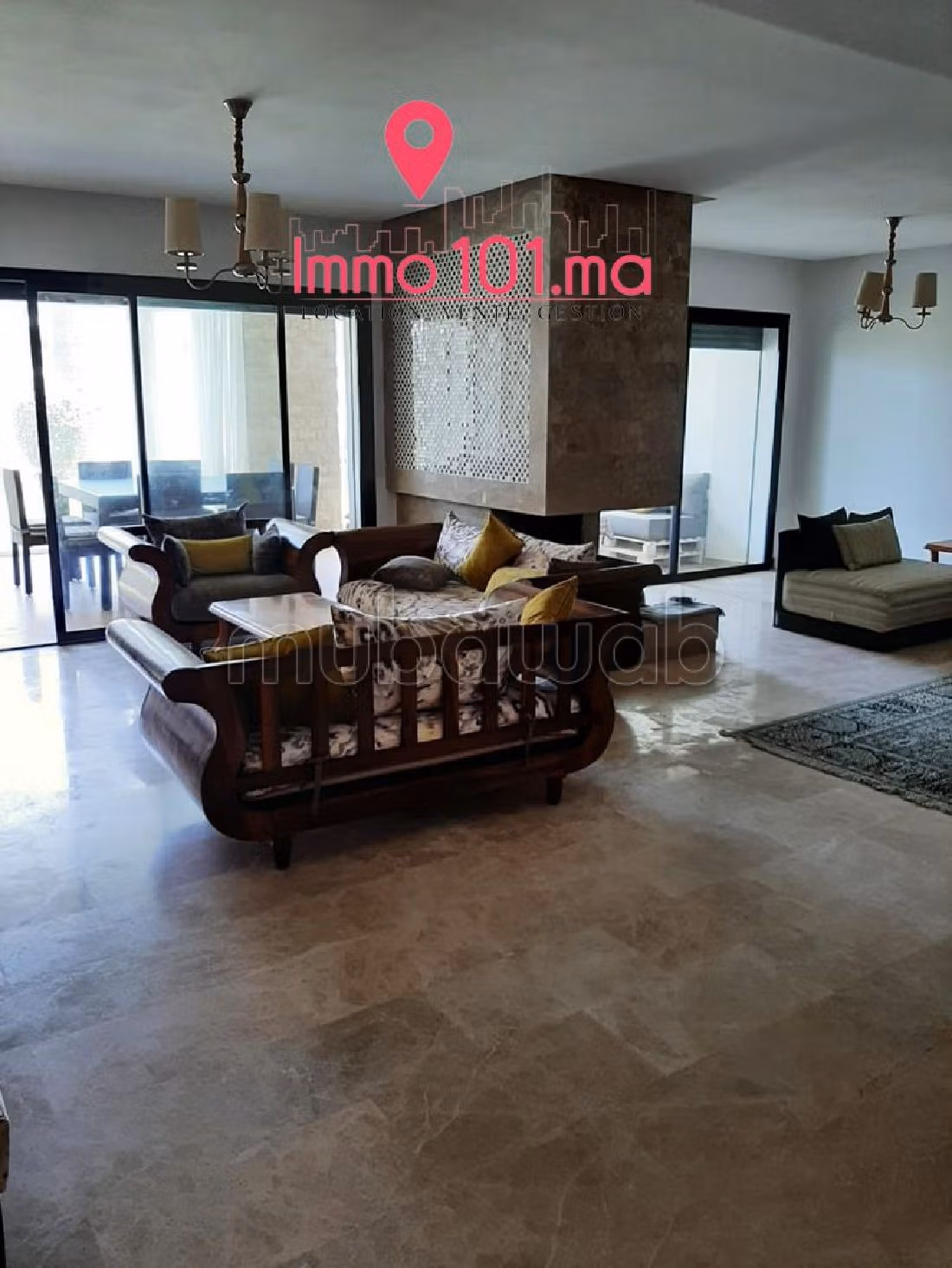 Altas prestaciones para este piso en alquiler. Precio 12.000 DH. 3 dormitorios, 3 baños, 186 m². 5 habitaciones. Buen estado. Suelo de parquet Mármol. Propiedad completamente amueblada.