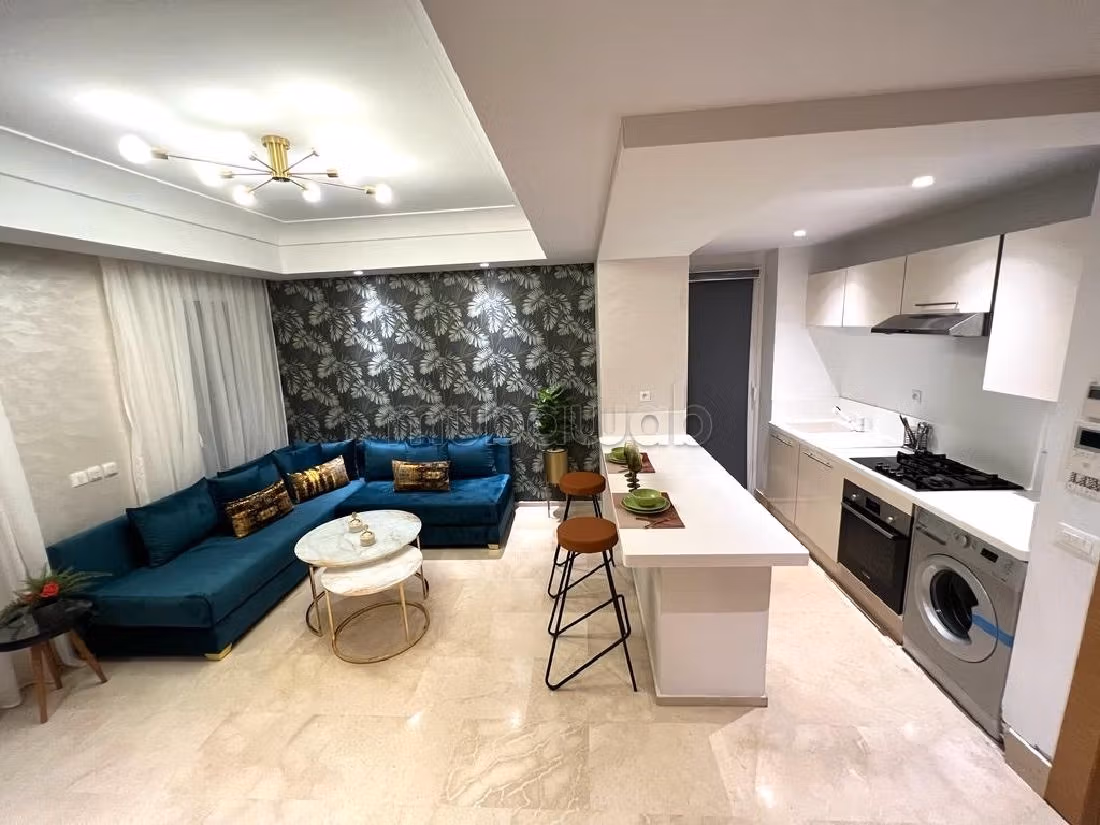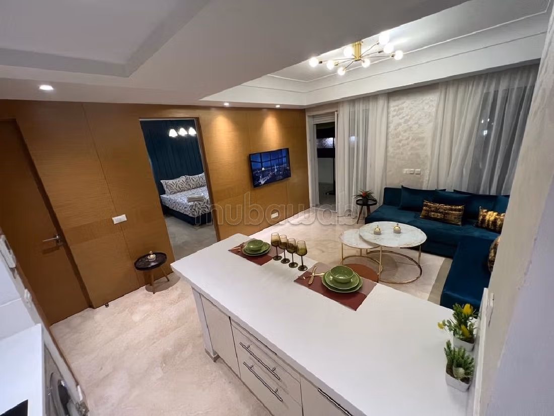 Pisos en alquiler. Precio 700 DH. 2 habitaciones, 2 baños, 60 m². 1 dormitorios. 1º Úlltima planta. Nuevo. Suelo de parquet Mármol. Estancia 2. Decoración tradicional con hermoso salón marroquí. La propiedad también está equipada con una antena parabólica y una puerta blindada. La residencia es segura.