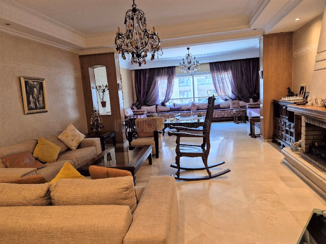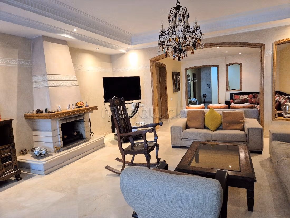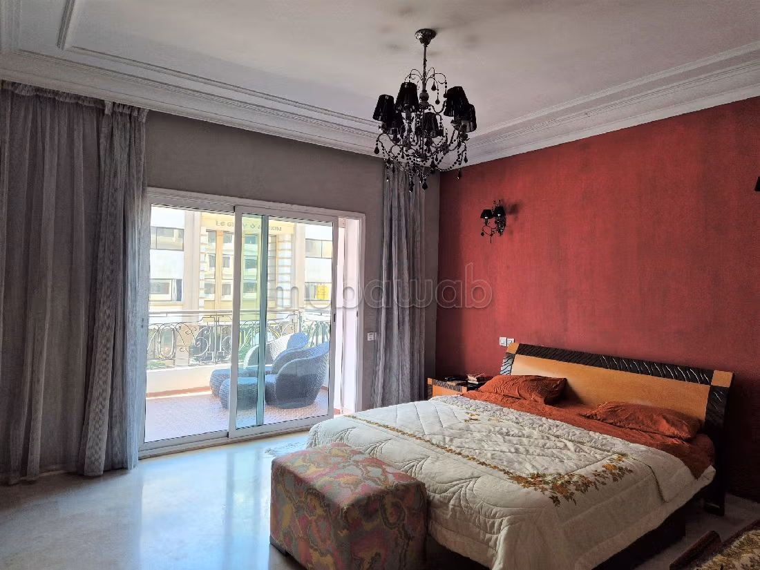 Altas prestaciones para este piso en alquiler. Precio 23.000 DH. 3 dormitorios, 2 baños, área 350 m². 6 habitaciones. 3º Planta. Buen estado. Suelo de marmol Mármol. Propiedad completamente amueblada.