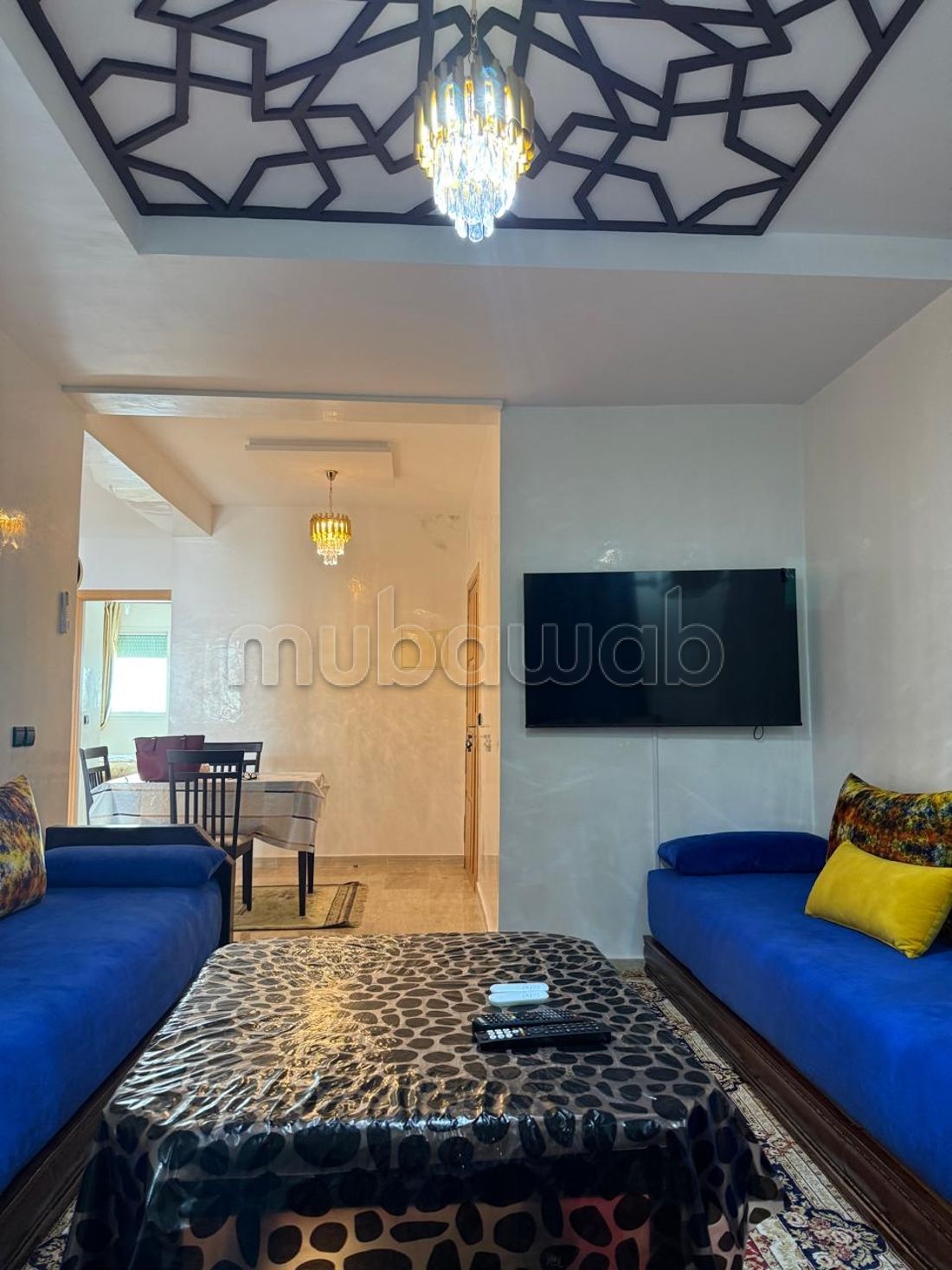Hola, alquilo un bonito apartamento amueblado para larga duración disponible de inmediato, situado en Temara, avenida Tarik Ibn Ziyad, residencia Imane sobre el supermercado BM y el café Mabrouka, a 10 minutos de Hay Reyad en coche, bien asegurado en una hermosa residencia en el cuarto piso con ascensor, apartamento bien diseñado con una gran habitación con un gran armario muy tranquilo, una sala de estar, un gran salón, baño, inodoro, una gran cocina, un balcón, el apartamento recibe buena luz solar, está bien ventilado, residencia limpia y bien cuidada. El precio es de 6500 dh