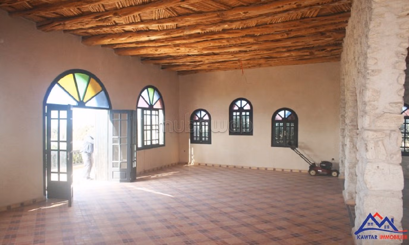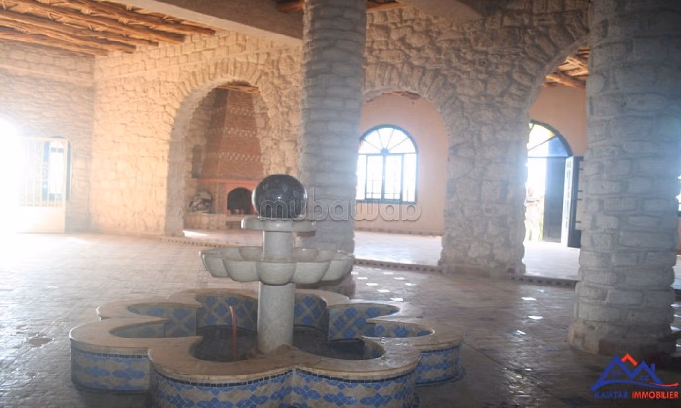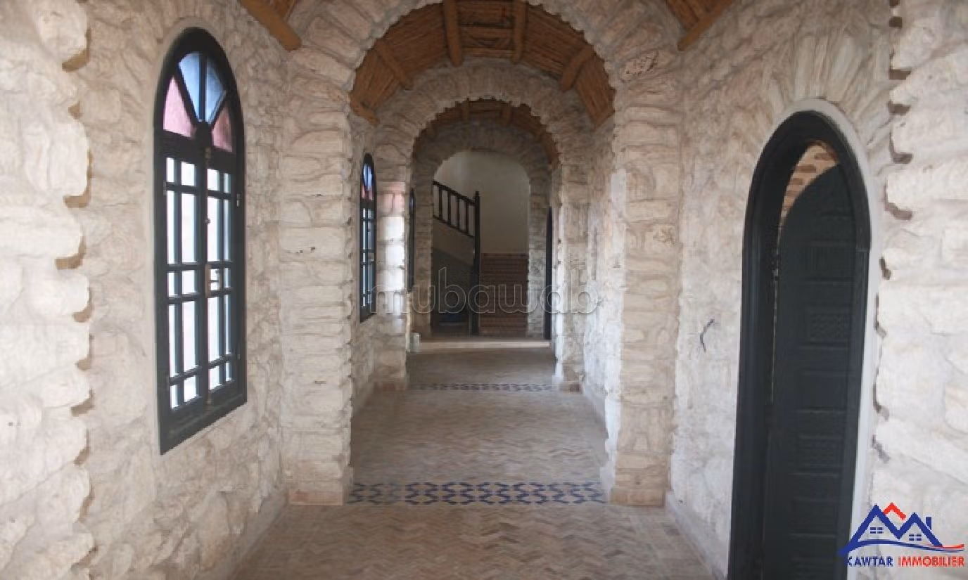 Au nord Essaouira, offrant une vue imprenable sur océan, se dresse cette magnifique villa une superficie habitable environ 380 m², nichée sur un terrain environ 3200 m², clos de murs en pierre. Le jardin, richement arboré, est agrémenté une piscine et de plusieurs terrasses, offrant un cadre de vie paisible et élégant.