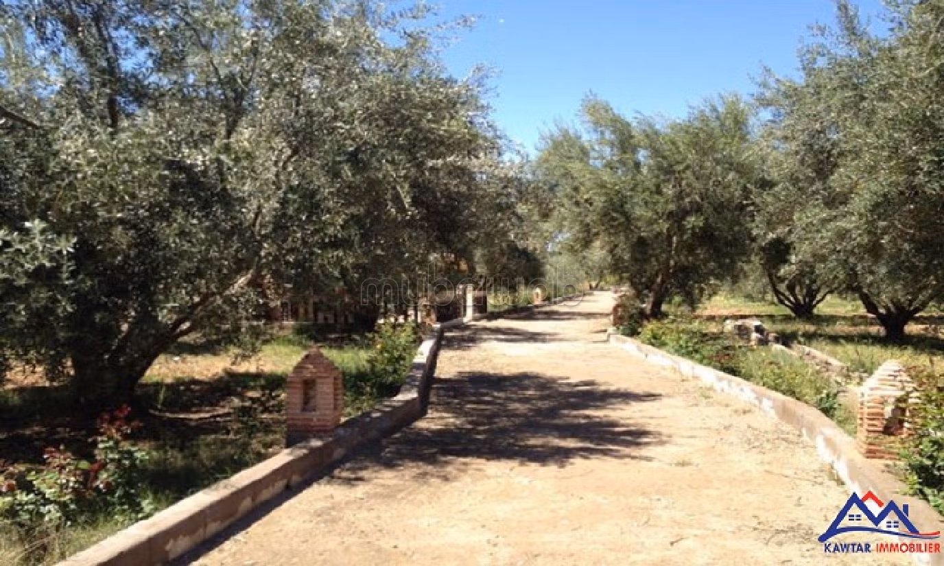 A 24 km de Marrakech se trouve cette belle Maison de 3,54 hectare aroborés Cette propriété est titrée, elle est une surface habitable de 450 m². vous offre un joli jardin arboré avec 400 oliviers 600 citroniers 50 grenadiers - 60 arbre fruitiers en tierrement irrigués par systéme goutte à goutte ,