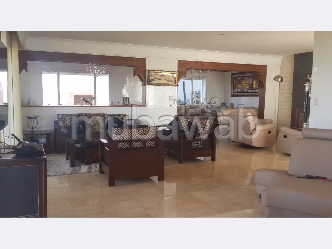 Magnifique villa en location Meublée au projet "les Jardins de l'Océan" à Dar Bouazza, un des plus beaux sites de Casablanca avec un jardins et lac de 4ha, site fermé et sécurisée à proximité de la mer, Surface terrain: 1000m², Surface construite: 540m², comprend: