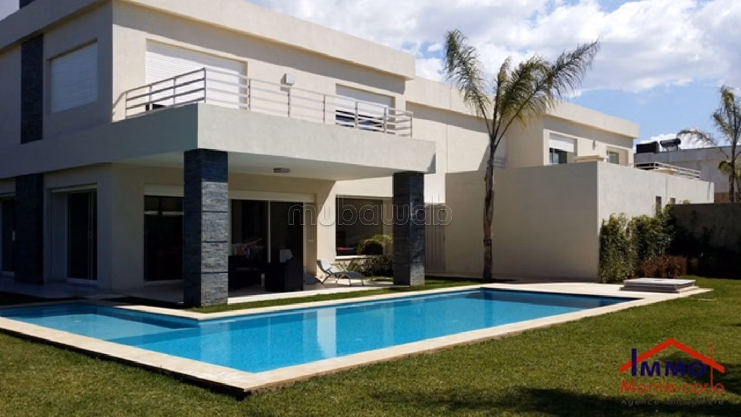 Villa moderne neuve à louer à Rabat , bien ensoleillée et calme sécurisée et très agencée avec piscine jardin clôturé privatif avec puit d’eau, chauffage central, climatisation et un système d’alarme contrôle à distance, installations internet, tv et téléphone et vidéophone, la villa se compose d’une réception avec cheminée, salles d’eau pour les invités, une cuisine équipée d’une plaque cuisante, four, la hotte, lave vaisselles et la machine à laver , 4 chambres et 4 salles de bain, un garage automatique, buanderie,… Pour plus d’informations ou visite n’hésitez pas de contacter notre agence immobilière Immo Monte-Carlo