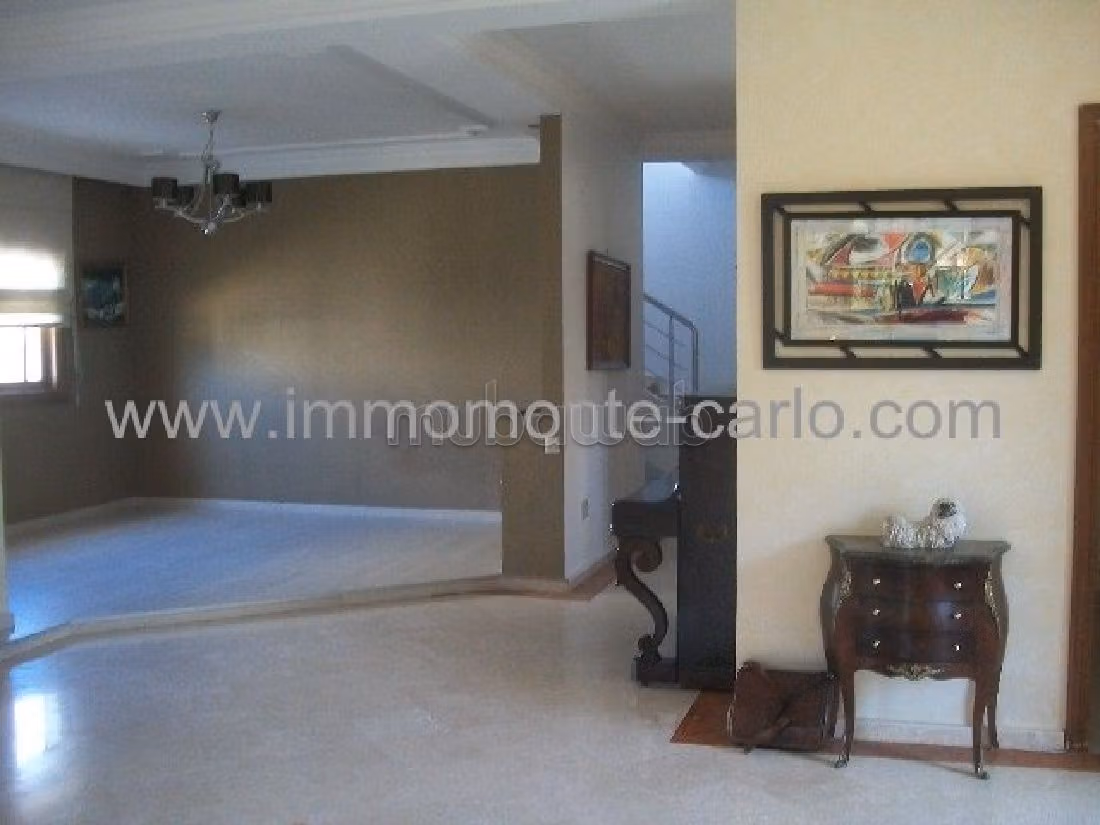 belle villa style européen bien située à Hay Riad , ensoleillée sécurisée et calme, climatisation et chauffage, extérieures haut de gamme (parquet, marbre, rideaux électrique, murs peinture Al-Anbaa,…) , une cuisine moderne équipée et bien aménagée, dotée d'un jardin bien entretenu fleuri et arboré et des terrasses ensoleillés qui donnent sur le jardin, grand garage , une réception lumineuse avec vue sur le jardin: se compose de double salons, un beau séjour ensoleillé , WC pour les invités, une buanderie, une suite parentale avec salle de bain baignoire et douche et dressing et une grande terrasse, 2chambres avec des placards, salle de bain et des balcons, un cour, logement de personnel… Pour plus d’informations ou visite n’hésitez pas de contacter notre agence immobilière Immo Monte-Carlo au N de tél: 212661464037/ 212661212547ou Tél/Fax: 212537755043 ou par E-mail : immomontecarlo@gmail.com ou visitez notre site www.immomonte-carlo.com ou rendez-vous à rue Dayet Aoua, Imm 2, Apt 3, Agdal RABAT MAROC