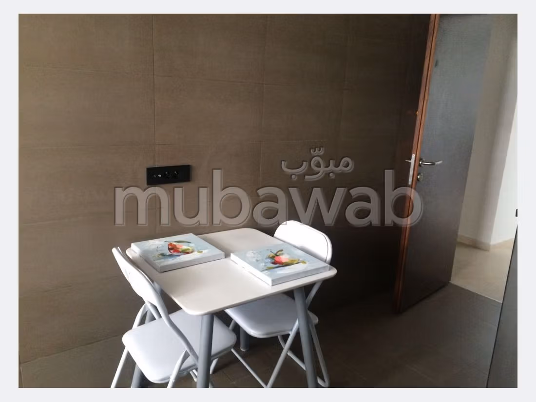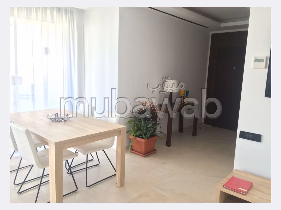 a louer Appartement neuf, haut standing et meublé, d’une superficie de 140 m², situé dans une résidence sécurisée, à orangerie souissi. Il comprend un hall d’entrée, salon européen (TV et table basse comprises), une terrasse donnant sur un jardin privatif de 20 m², une salle à manger, une cuisine équipée avec buanderie, ainsi qu’une chambre à coucher en suite parentale avec dressing et salle de bain (jacuzzi robinetterie de haut de gamme). Climatisation centralisée. Immeuble avec parking et ascenseur.