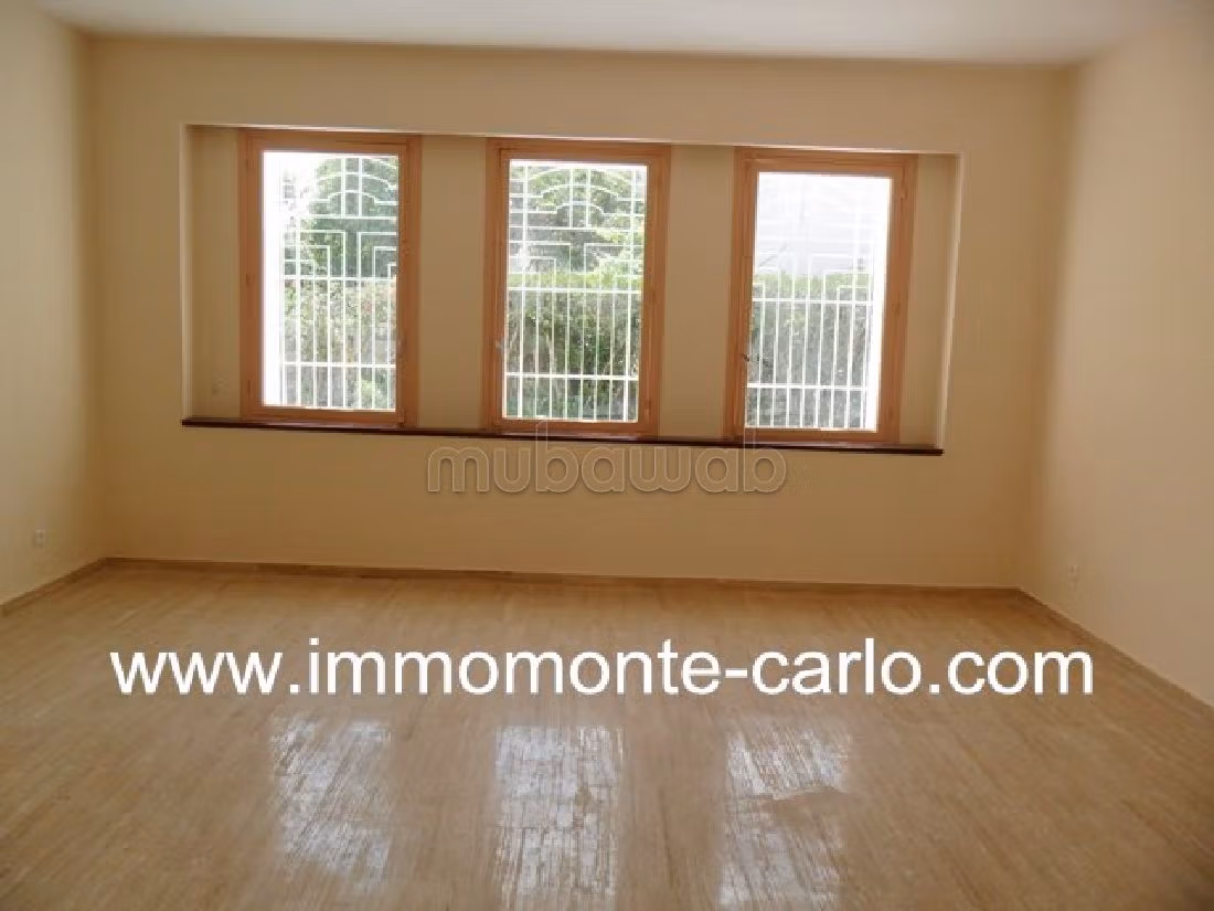 Villa plain pied avec chauffage et climatiseurs d’une superficie d’environ 2000 m² très ensoleillée à louer au quartier résidentiel de Souissi, entourée d’un jardin bien entretenu, garage et logement de gardien composée de double salons avec cheminée, hall, WC des invités, 5chambres, dressing, 3salles de bain, grand terrasse, balcons, cuisine, buanderie, logement de personnel, prix de location : 30000dh/mois. Pour plus d’informations n’hésitez pas de contacter notre agence immobilière Immo Monte-Carlo au N de tél: 212661464037 /212661212547 ou Tél / Fax:212537755043 ou par E-mail : immomontecarlo@gmail.com ou visitez notre site www.immomonte-carlo.com ou rendez-vous à rue Dayet Aoua, Imm 2,