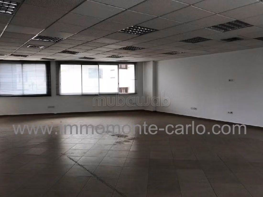 Location à Rabat Bureau à Hassan bien placé dans une avenue principale, avec un grand garage avec portail automatique, des toilettes, climatisation réversible dans toutes les pièces, des dont la superficie de 200m² dans un immeuble bureau avec 2 ascenseurs, une sortie d’urgence, installation câblage et réseau, standard,…Pour plus d’informations ou visite n’hésitez pas de contacter notre agence immobilière Immo Monte-Carlo .