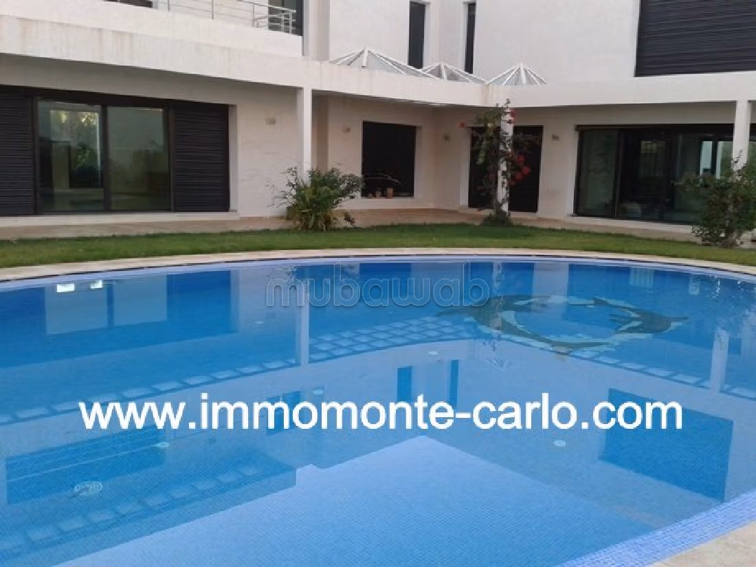 À louer à Rabat villa d’architecture moderne haut standing avec piscine chauffage, villa très propre. Villa entourée d'un beau jardin avec puit, jolie piscine, grand garage, logement de gardien, construite sur 3 niveaux et composée de: Rez de chaussée spacieux et lumineux avec terrasse donnant sur la piscine et le jardin, comprenant triple salons, coin cheminée moderne, séjour avec cheminée, WC des invités, chambre d’amis avec salle de bain et une terrasse donnant sur la piscine et le jardin, cuisine neuve équipée moderne. Étage: suite parental avec dressing, salle de bain et grande terrasse, 3 chambres à coucher chacune avec sa salle de bain et dressing et terrasse privée, Sous-sol : hammam marocaine, douche, WC, chambre et salon, débarras, buanderie, logement de personnel….Pour plus d’informations n’hésitez pas de contacter notre agence immobilière Immo Monte-Carlo au N de tél ou par E-mail ou rendez-vous à rue Dayet Aoua, Imm 2, Apt 3, Agdal RABAT MAROC.