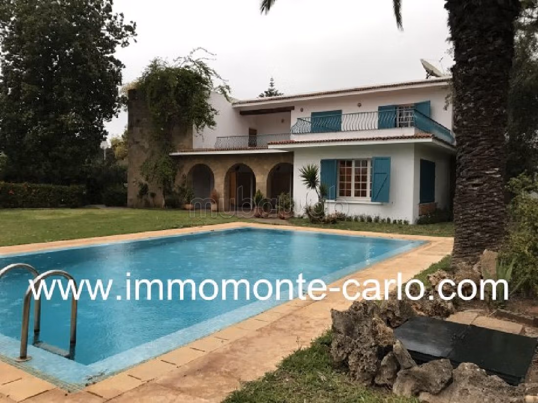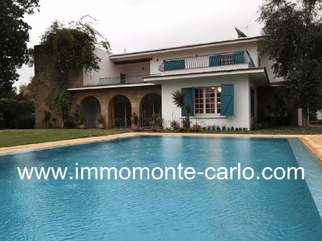 Villa avec piscine chauffage central climatisations et un beau jardin fleuri. A l’intérieur se trouve 3 salons avec un coin cheminée et salle d’eau pour les invités et séjour terrasse donnant sur le jardin et la piscine, une cuisine une chambre d’amis avec sa salle de bain à l’étage 5chambres 3 salles de bain et une grande terrasse. Coté extérieur il y a un puits jardin, piscine un grand garage buanderie et logement du personnel avec douche… Pour plus d’informations ou visite n’hésitez pas de contacter notre agence immobilière Immo Monte-Carlo ou rendez-vous à rue Dayet Aoua, Imm 2, Apt 3, Agdal RABAT MAROC