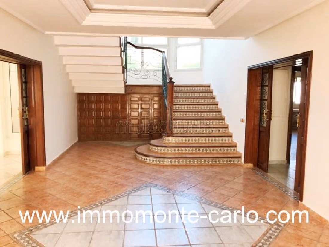 À louer villa standing lumineuse et à Rabat au quartier Souissi. Dans un environnement privilégié, villa avec un très joli jardin bien entretenu fleuri, idéalement située dans un quartier résidentiel, bénéficiant de prestations hauts de gamme, beaux volumes aux grandes baies vitrées et superbe vue sur le jardin, une grande terrasse , , climatisations réversibles dans toute la maison, grand garage automatique, panneaux solaires pour l’eau chaud, villa composée au :